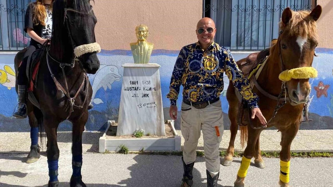 Türkiye’de milyonlarca vatandaş bugün yerel yöneticilerini belirlemek için sandığa koşarken, İzmir’in Bornova ilçesinde daha önce Cumhurbaşkanlığı Seçimi 2. tur oylamasında atıyla oy kullanan Faruk Ceren yine renkli görüntülere imza attı. Yaka Mahallesi’nde binicilik antrenörlüğü yapan Faruk Ceren (48), oy kullanacağı Yaka Şengül Mustafa Karaca İlkokulu’na at üstünde giderken, öğrencisi (12) Karya Kulapa da kendisine atla birlikte eşlik etti. ’Karamel’ ve ’Kara İnci’ adlı atlarıyla okula giden Ceren, sandığa gidip oyunu da kullandı.