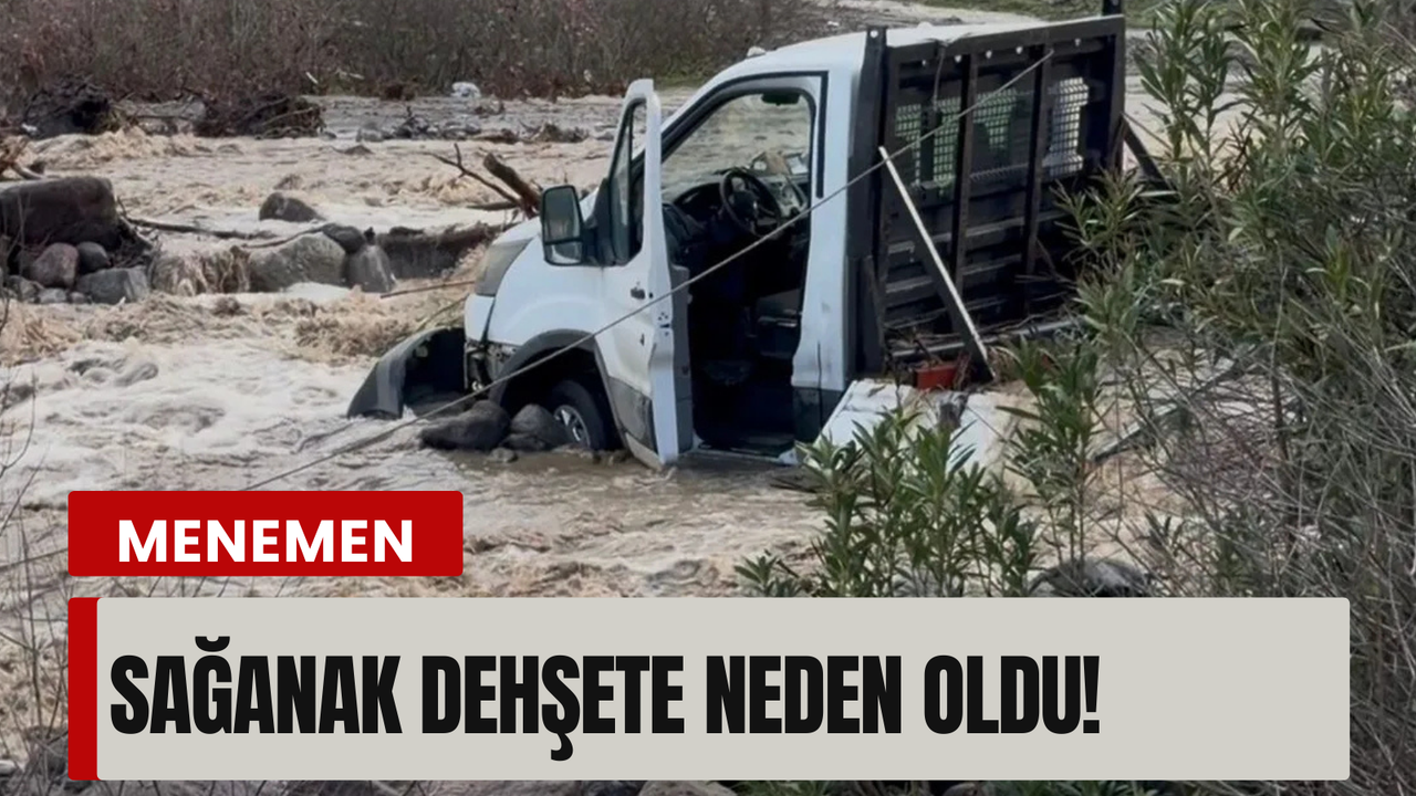 Menemen’in Emiralem Kır Mahallesi’nde, yukarı kesimden seyir halinde olan ve plakası öğrenilemeyen bir kamyonet, dere geçişi sırasında aniden yükselen su nedeniyle mahsur kaldı.