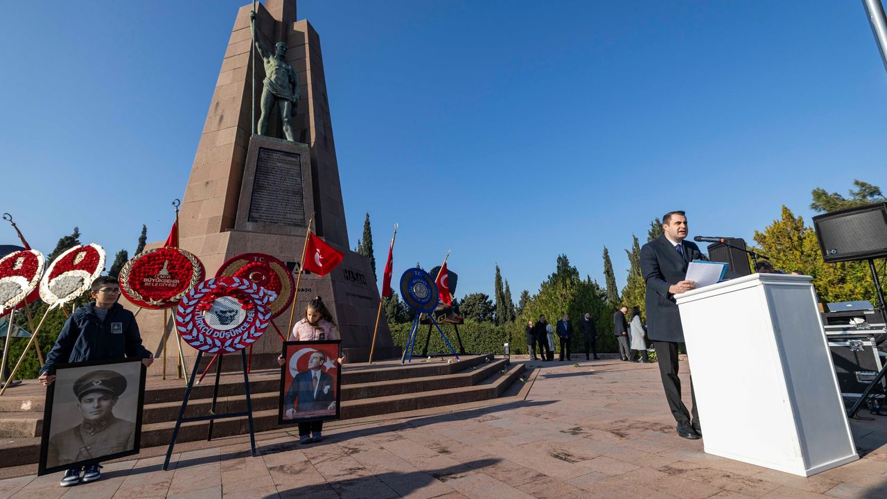Konuşmaların ardından şehitliğe geçen Başkan Tugay, mezarlara kırmızı karanfil bıraktı.
