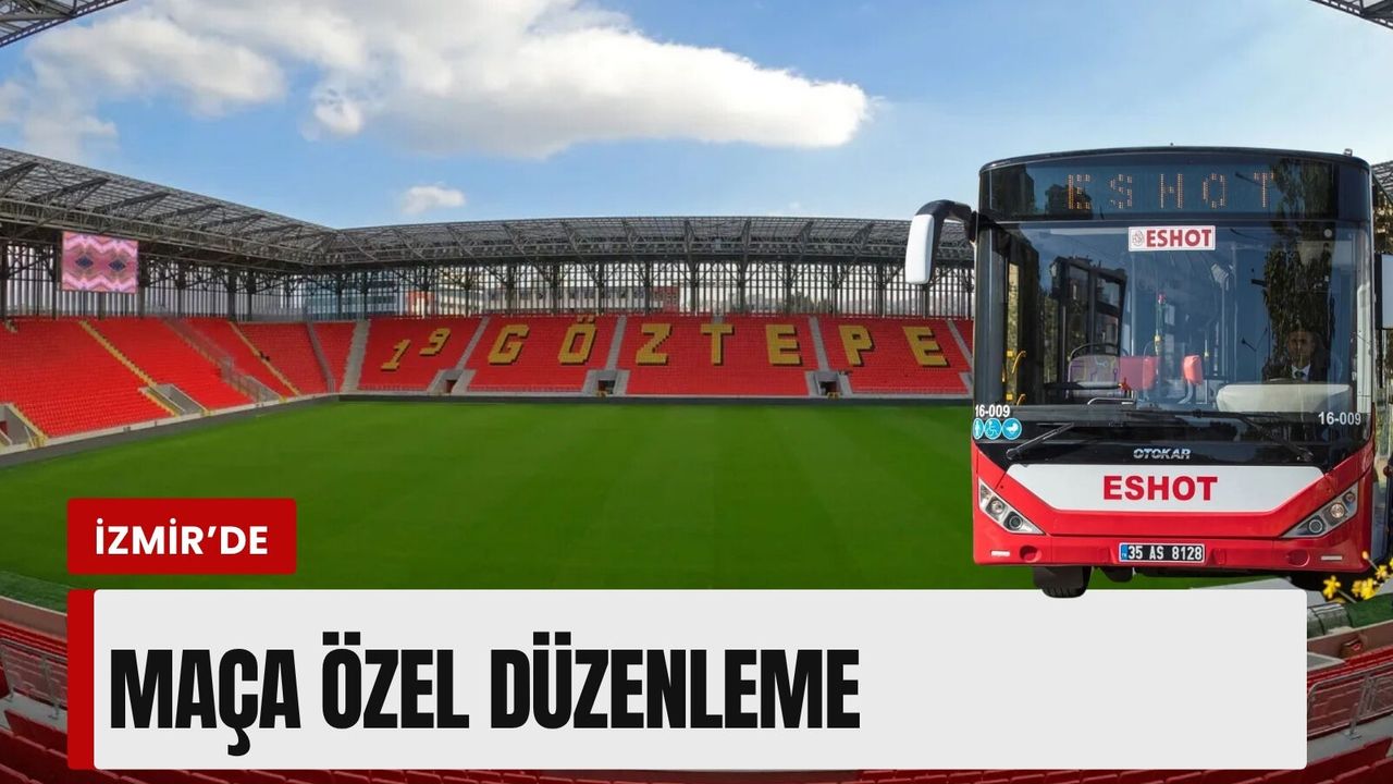 Gürsel Aksel Stadyumu’nda gerçekleşecek müsabaka kapsamında bazı otobüs hatlarında değişiklik yapılacak. ESHOT tarafından yapılan duyuruya göre, saat 15.00 ile 21.00 arasında 10199 ID numaralı Adnan Saygun Sanat Merkezi durağı geçici olarak hizmet dışı kalacak.
