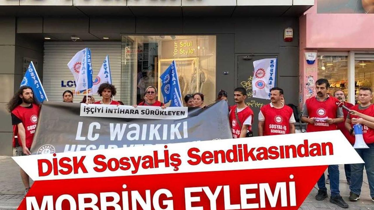 Devrimci İşçi Sendikaları Konfederasyonu (DİSK) Sosyal-İş İzmir Şubesi, Samsun’da LC Waikiki mağazasında reyon yönetici olarak çalışan Muhammed Yavuz’un uğradığı baskı ve mobbing nedeniyle intiharını LC Waikiki önünde protesto etti.