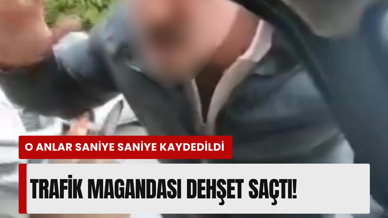 Şahıs, aracın açık camından içeriye uzanarak sürücüyü dışarı çıkarmaya çalıştı. Araçta bulunan eşi, yaşananları cep telefonu kamerasıyla kaydetti.
