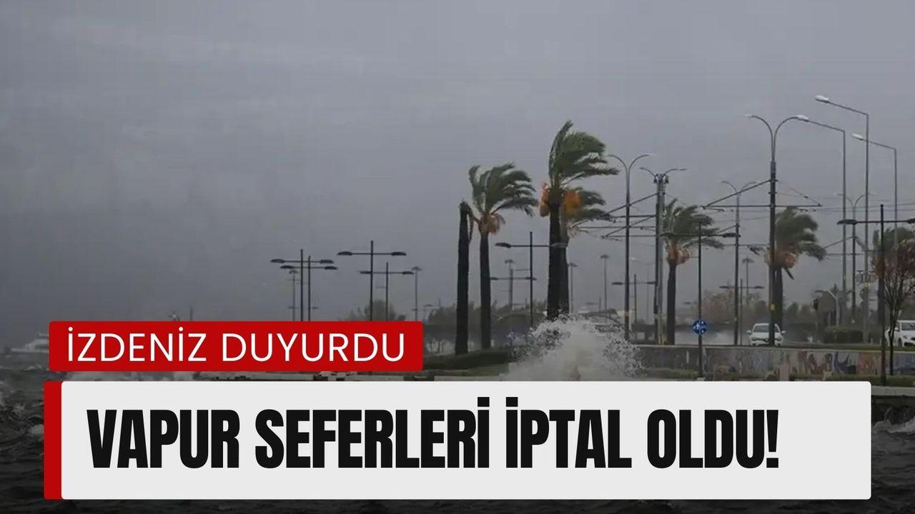 İzmir’de etkili olan güney yönlü rüzgar ve kötü deniz koşulları nedeniyle vapur seferleri iptal edildi. İZDENİZ Genel Müdürlüğü’nün açıklamasına göre, Bostanlı ve Karşıyaka hattındaki yolcu gemisi seferleri saat 13.30 itibarıyla durduruldu.