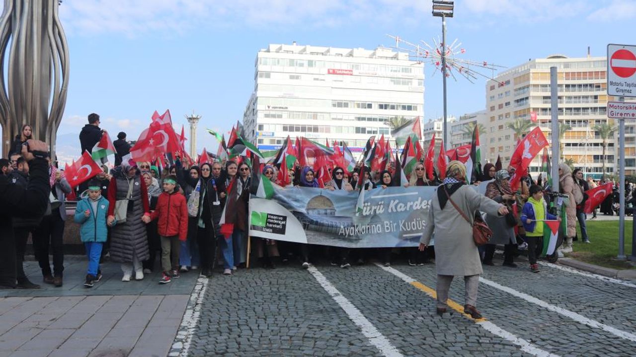 İzmir Sivil Toplum Kuruluşları Platformu (İSTOK) tarafından 10 Aralık Dünya İnsan Hakları Günü’nde Filistin’e destek yürüyüşü düzenlendi. Öğle saatlerinde Cumhuriyet Meydanı’nda bir araya gelen ve aralarında çok sayıda kadın ve çocuğun da bulunduğu vatandaşlar, Konak Meydanı’na doğru yürüdü.
