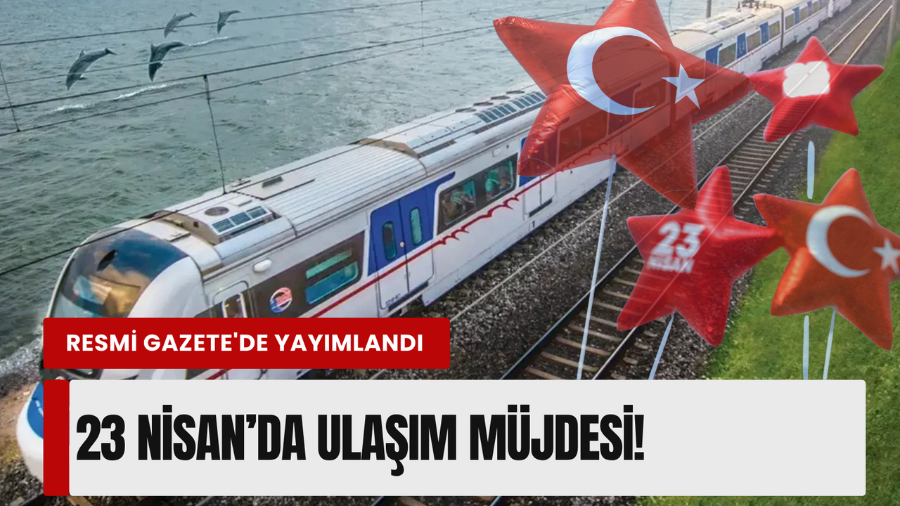 23 Nisan Ulusal Egemenlik ve Çocuk Bayramı nedeniyle, 23 Nisan 2026 Perşembe günü Başkentray, Marmaray, İZBAN, Sirkeci-Kazlıçeşme Raylı Sistem Hattı, Gayrettepe-İstanbul Havalimanı-Arnavutköy Metro Hattı seferleri ile belediyeler ve bunların kurdukları birlik, müessese ve işletmelerce yürütülen toplu taşıma hizmetlerinden yararlananlar, 8/1/2002 tarihli ve 4736 sayılı Kanunun 1 inci maddesinin birinci fıkrası hükmünden muaftır.”