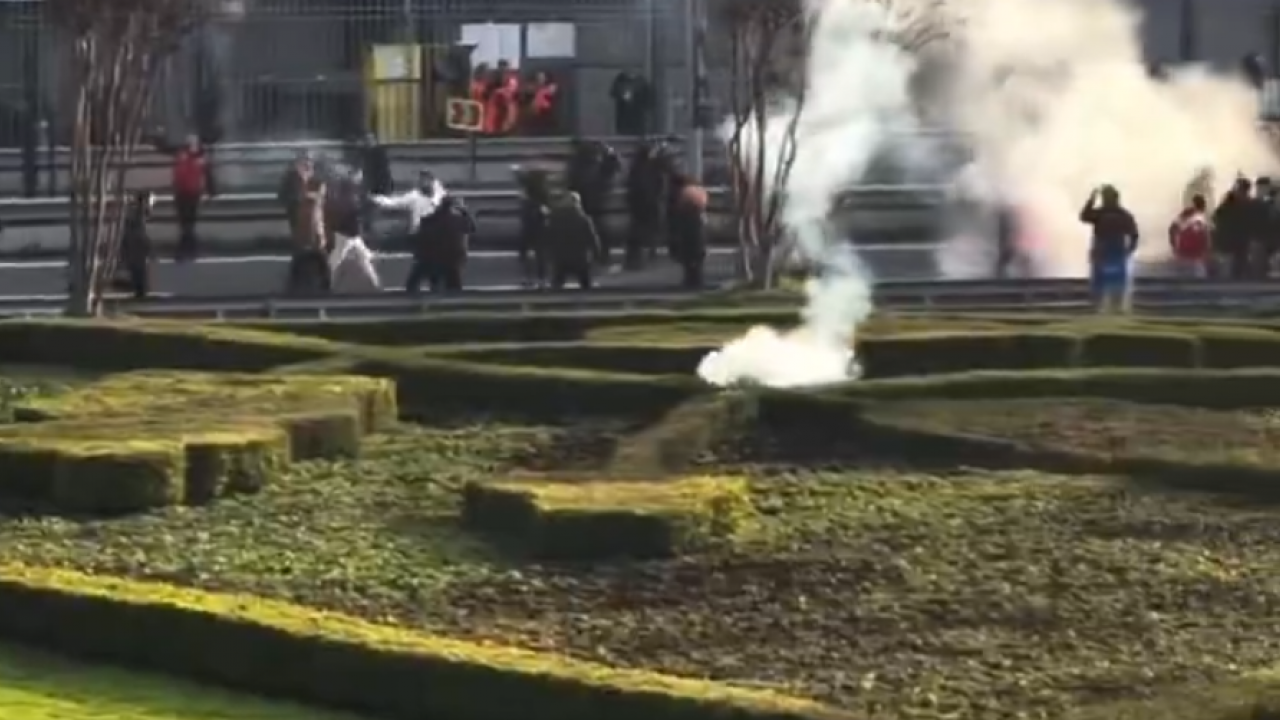 Yüzlerini kapatmak isteyen Göztepe taraftarlarına polis ekipleri müdahale ederek açmalarını istedi. Yaşanan arbedede bir polis memurunun yere düştüğü görüldü. Olayların ardından bazı taraftarlar gözaltına alındı.