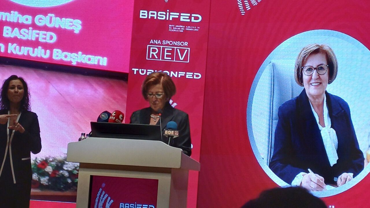 Açılışta konuşan ev sahibi BASİFED’in Başkanı Semiha Güneş, ‘’Cumhuriyetimizin kurucusu Mustafa Kemâl Atatürk, 1923’ün Ocak ayında Eskişehir, Bursa, Manisa ve nihayetinde İzmir üzerinden gerçekleştirdiği Batı Anadolu gezisi boyunca halka yaptığı konuşmalarda, zaferlerin süngüyle değil, iktisat ve ilimle taçlanması gerektiğini anlatıyordu. Asıl büyük zaferin toplumsal ve ekonomik kalkınma olduğunu gösteriyordu. Bu yüzden, 17 Şubat 1923’te başlayacak İzmir İktisat Kongresi yeni Türkiye’nin ekonomik yol haritasını çizerken, 2 Şubat 1923 Kadınlar Kongresi de bu yol haritasının yarısını oluşturan kadın emeğinin önemini vurguluyordu. İzmir’de toplanan binlerce kadın, Ata’nın ezber bozan bu yaklaşımını hayranlıkla dinliyordu. Hayrandılar. Zira, Osmanlı nüfus sayımında, erkekler ve hayvanlar sayılırken varlıkları dahi kayda geçmeyen kadınlar, o gün yeni cumhuriyetin inşasında erkeklerle eşit görev, yetki ve sorumluluğa sahip oluyorlardı. Atatürk dünya yüzünde ne varsa, ne başarılmışsa, o kadının eseridir dedi. O dayanaktır ki; her türlü baskı, zorbalık ve engellemelere rağmen bugün hayatın içinde ve ülkenin gelişiminde söz sahibi olabiliyoruz. Bir yandan da bugünden geleceğe kadınların öldürülmediği, hiçbir saldırıya uğramadığı, hayatın hiçbir alanında haksızlığa maruz kalmadığı, cinsiyet eşitliğinin sağlandığı, daha adil, daha insani, daha vicdani ve daha eşit bir ülke için mücadele veriyoruz. Bu yıl ki sloganımız: Güçlü Kadınlarla, Güçlü Ekonomi.