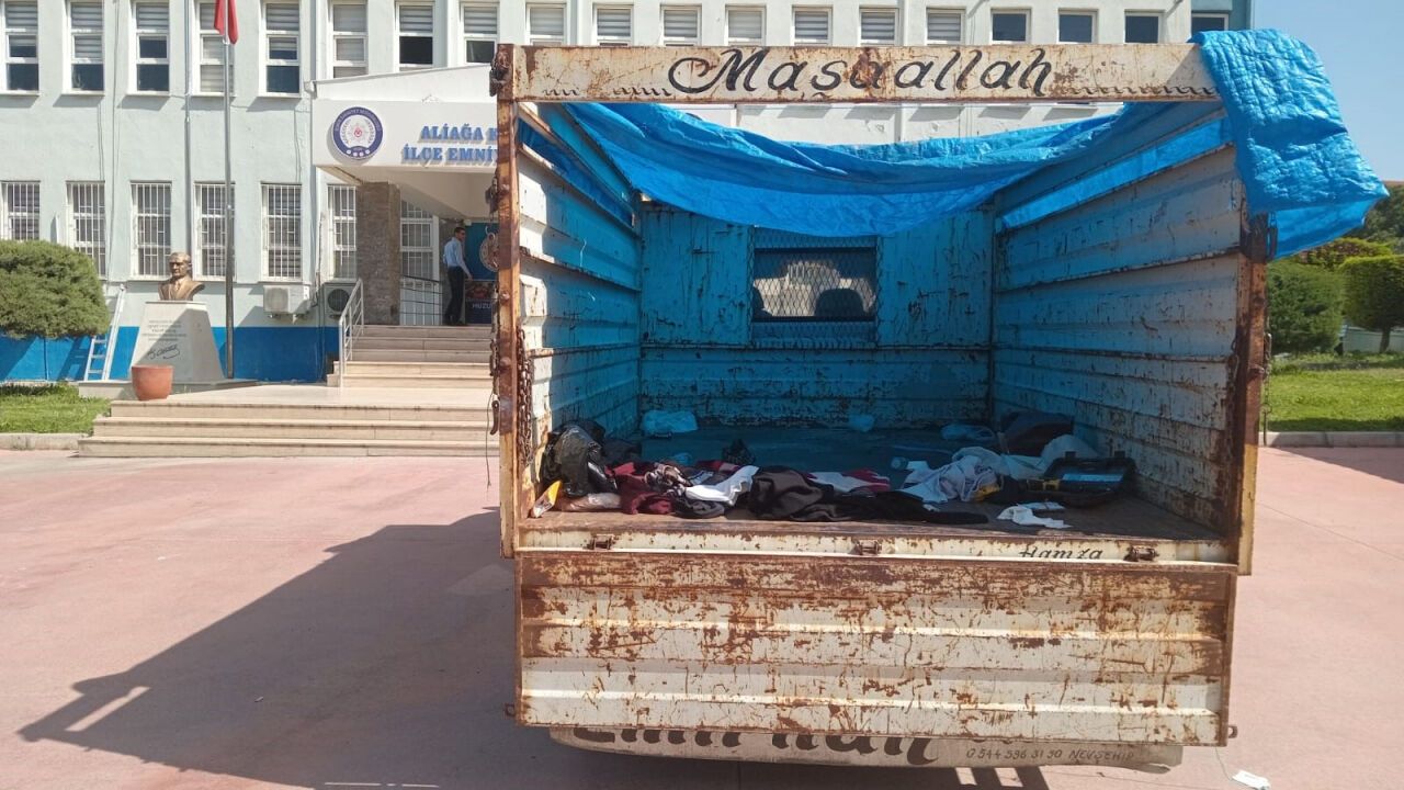 İzmir’in Aliağa ilçesinde gece saat 03.00 sıralarında, 35 AHR 178 plakalı kamyonetle göçmen taşındığı bilgisi üzerine Aliağa İlçe Emniyet Müdürlüğü ekipleri harekete geçti. Çanakkale istikametine seyreden araç durdurulmak istendiği sırada, sürücü S.Ö. aracı yol kenarına bırakıp kaçtı.