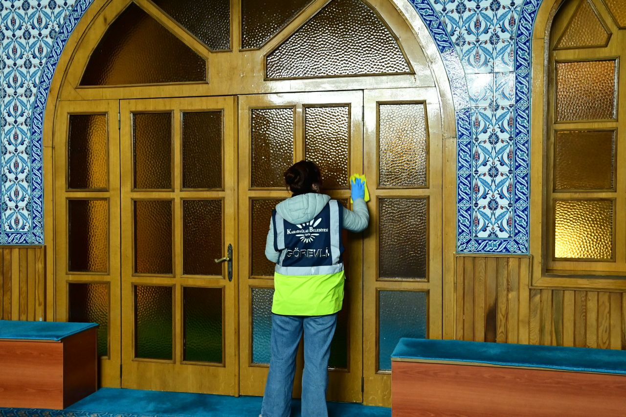 Belediye ekipleri, cami içlerini, halıları, mihrabı, minberi ve kürsüleri titizlikle temizlerken, avlu ve şadırvanlar da özel ekipmanlarla yıkandı.