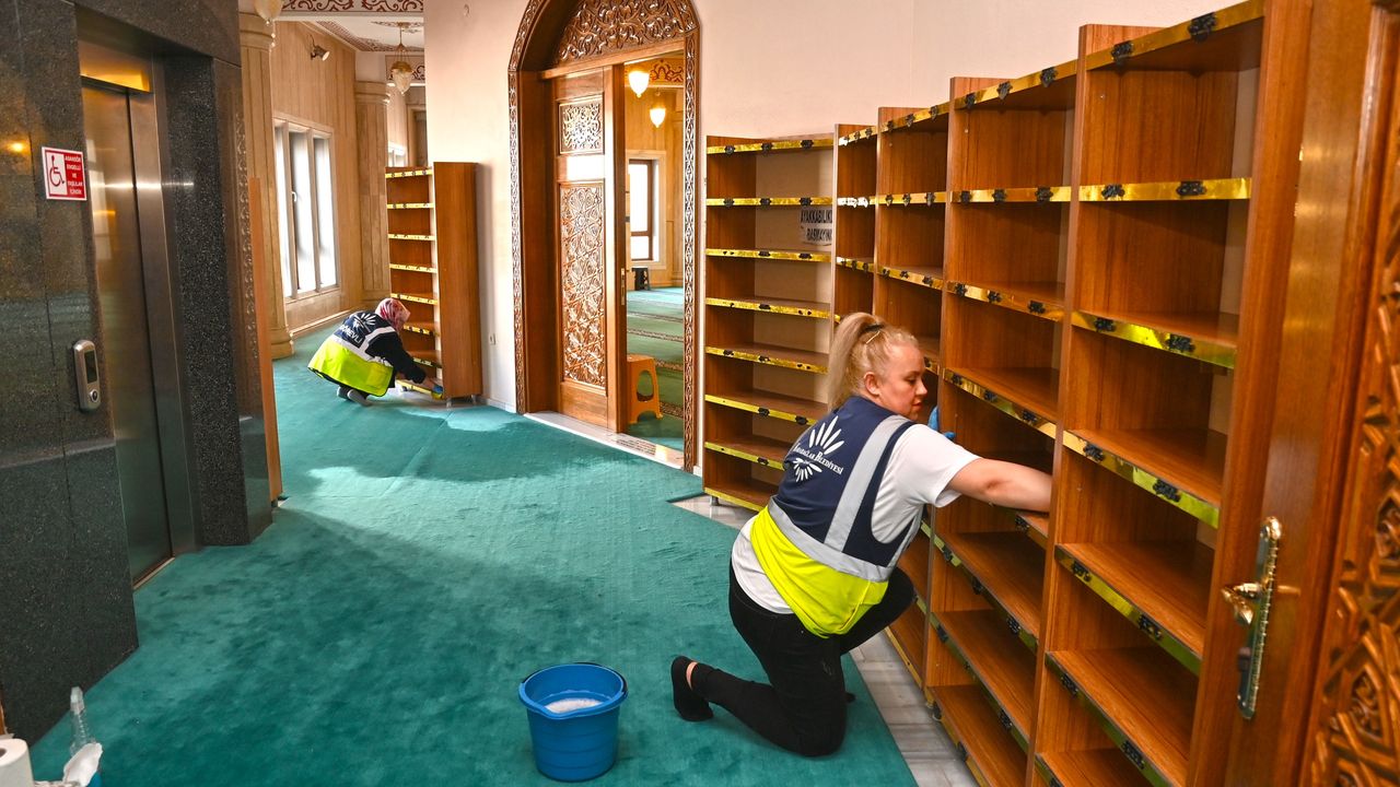 Belediye ekipleri, belirlenen program doğrultusunda camilerin halılarını süpürerek hijyenik hale getiriyor; kapı ve camlar özenle siliniyor. Mihrap, minber ve kürsüler ile ayakkabılıklar da titizlikle temizleniyor. Çalışmaların, 5’er kişilik ekipler tarafından koordineli şekilde sürdürüldüğü bildirildi.