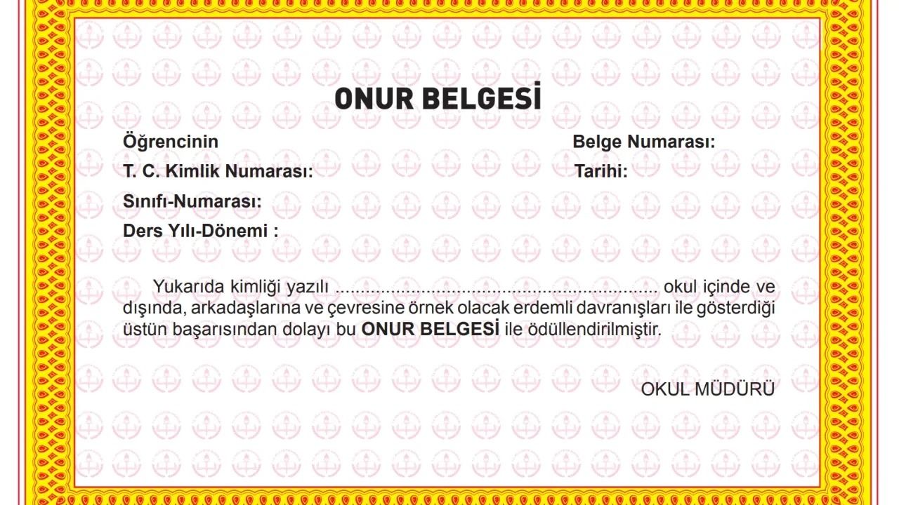 Onur Belgesi, öğrencinin yalnızca akademik başarısını değil; davranışlarını, sorumluluk bilincini ve çevresine karşı tutumunu esas alan özel bir belge olarak öne çıkıyor. Bu belge, öğrencilerin eğitim hayatı boyunca sergilediği örnek davranışları ödüllendirmeyi amaçlıyor.