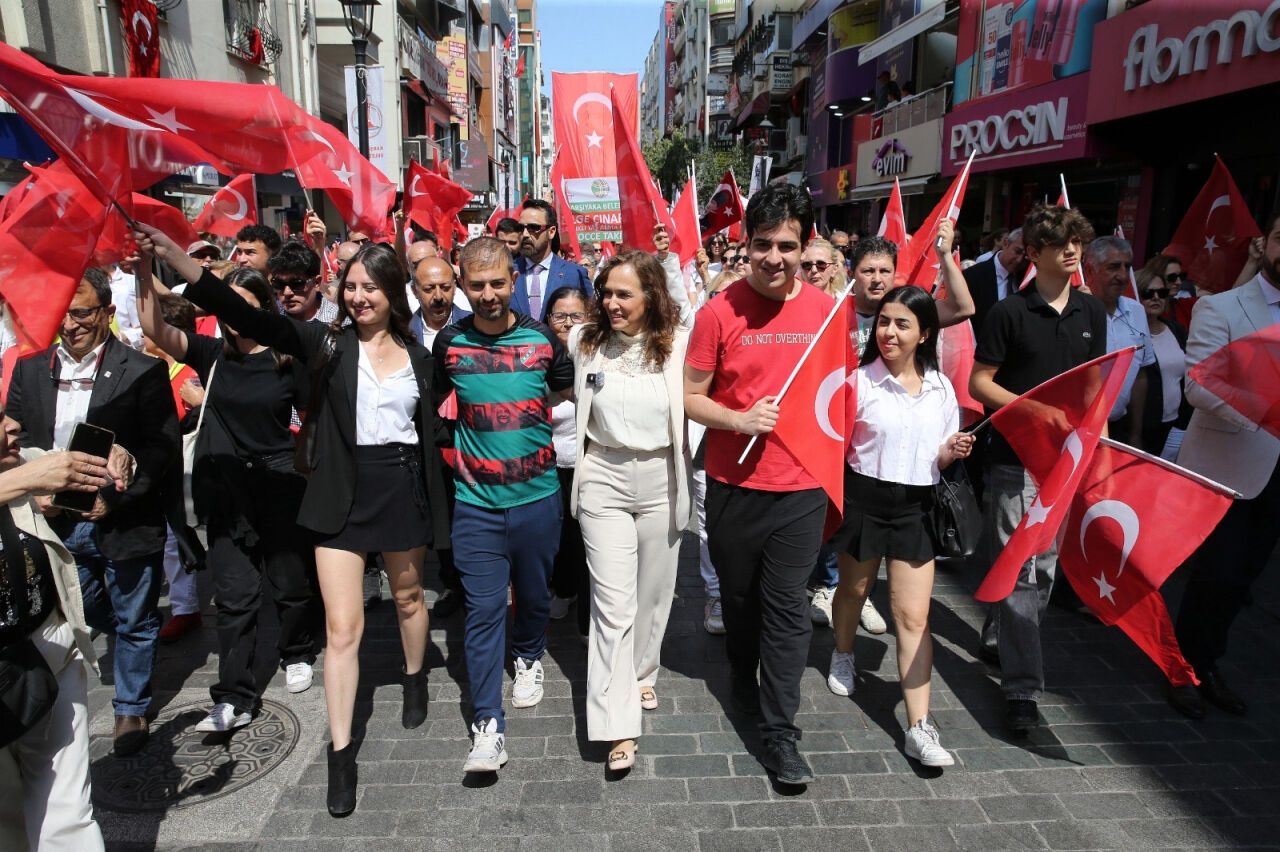 Karşıyaka Belediyesi tarafından düzenlenen etkinlikte, Atatürk sevdalıları bayraklarıyla belediye binası önünde buluştu, marşlarla dolu yürüyüşleriyle Çarşı’dan geçerek Hergele Meydanı’na ulaştı.