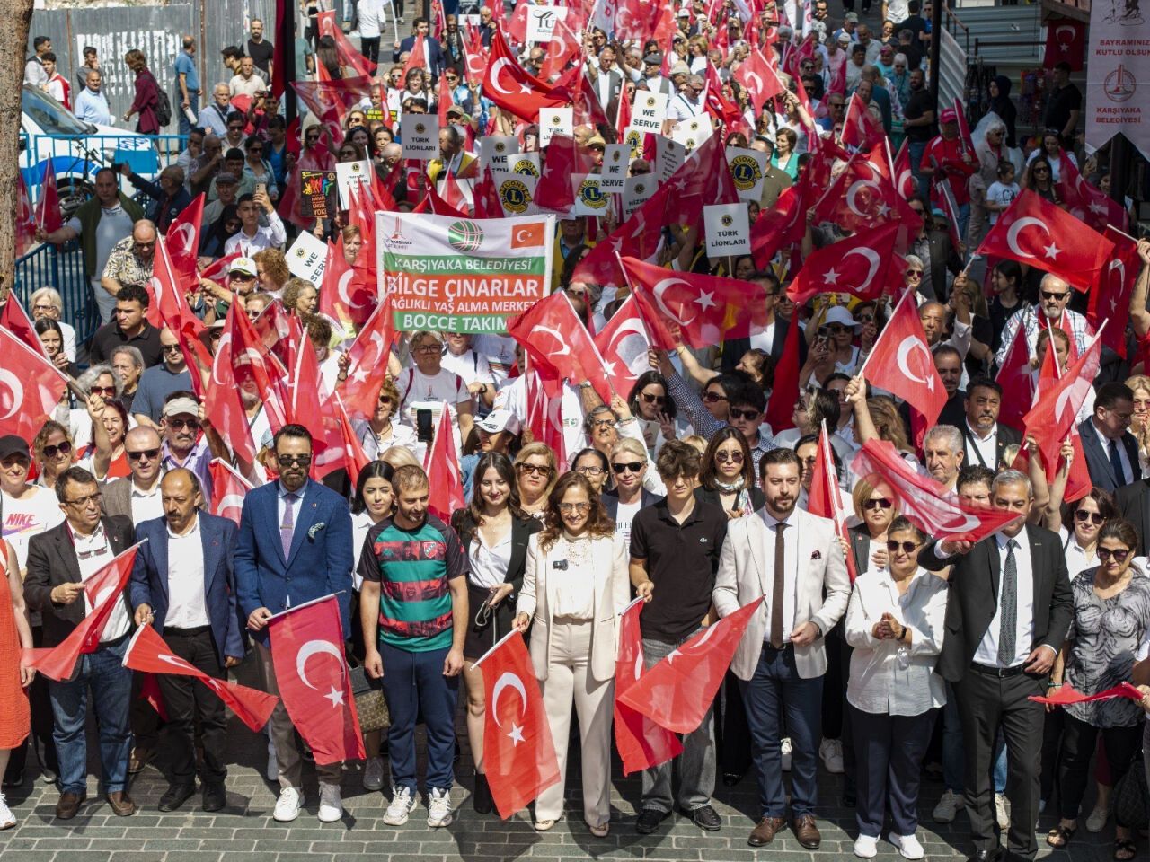 Resmi törenin ardından, Karşıyaka Belediyesi öncülüğünde “19 Mayıs Korteji” düzenlendi. Belediye binası önünde toplanan kalabalık, Karşıyaka Belediye Bandosu’nun çaldığı marşlarla yürüyüşe geçti. Coşku dolu kortej, esnafın ve balkonlardaki vatandaşların alkışlarıyla karşılandı. Yürüyüş, Hergele Meydanı’nda İzmir Marşı’nın hep bir ağızdan söylenmesiyle sona erdi.