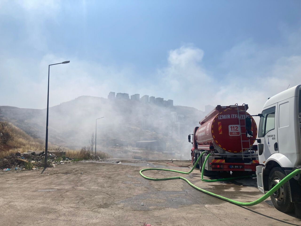 Yangının, katı atıklar arasında bulunan bir deodorant şişesinin patlaması sonucu başladığı belirtildi. Patlamanın ardından hızla yayılan alevlere itfaiye ekipleri kısa sürede müdahale etti. Ancak yoğun dumanlar Karşıyaka'nın birçok noktasından görüldü.