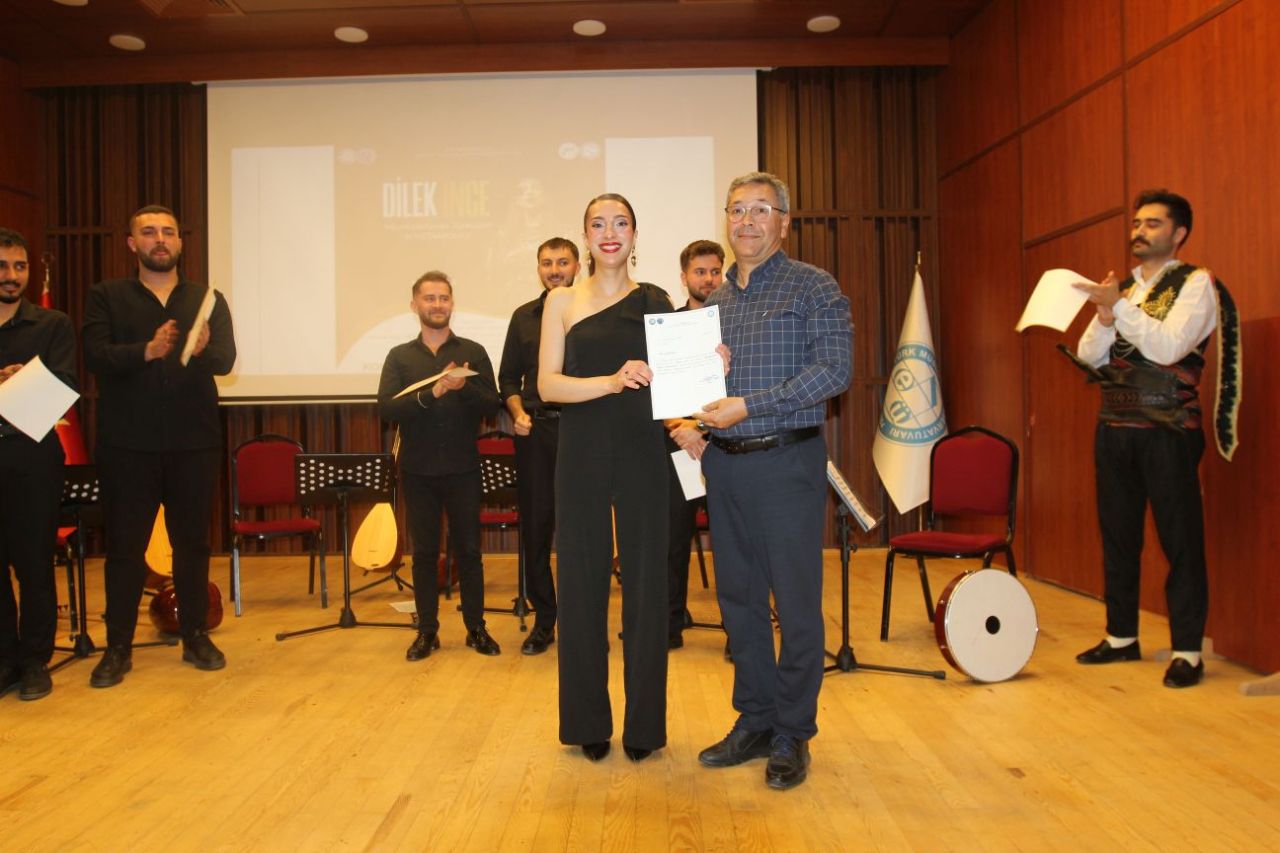 Dinletinin sonunda Prof. Dr. Ali Maruf Alaskan, solist Dilek İnce ve eşlik eden müzisyenlere “Teşekkür Belgesi” vererek katkılarından dolayı teşekkür etti.