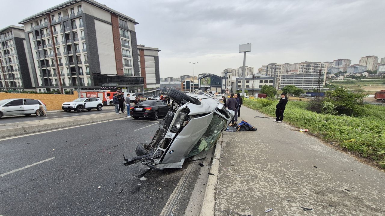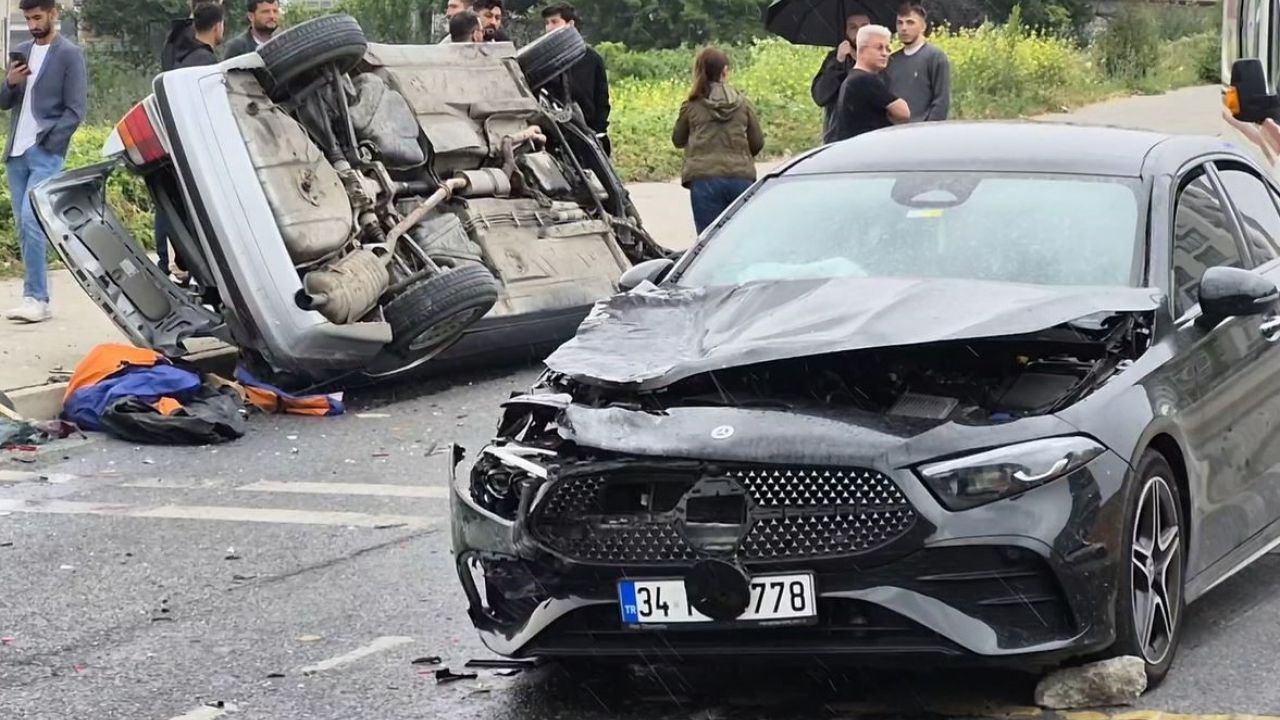 Çarpmanın etkisiyle 34 EKJ 905 plakalı otomobil de savrularak karşı şeride geçti ve takla attı.