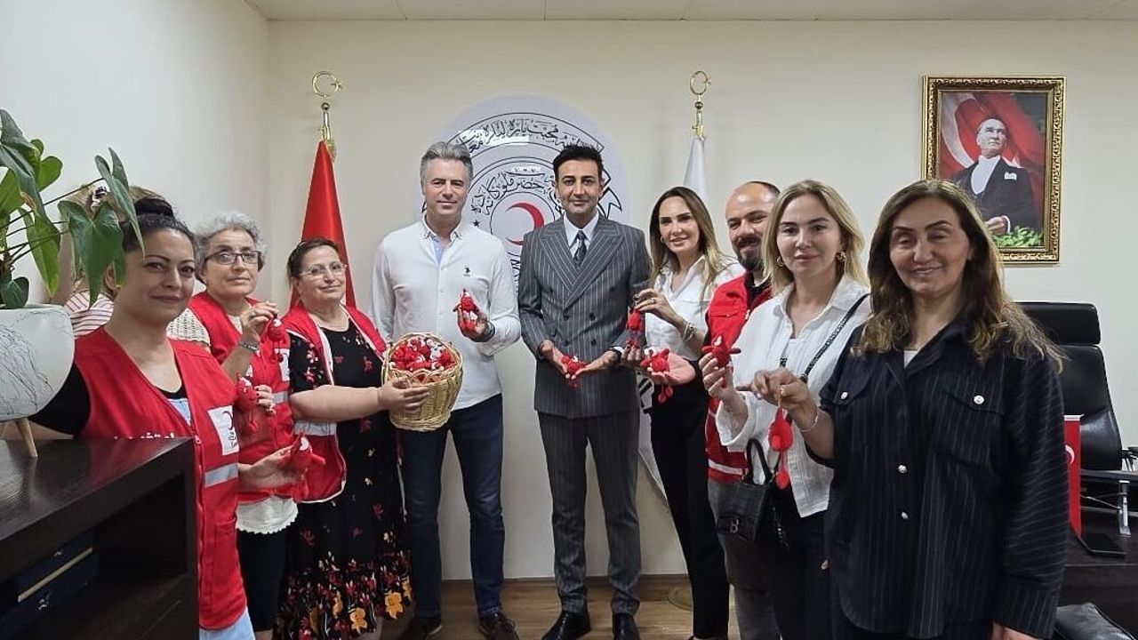 Dünya Gönüllü Kan Bağışçıları Günü kapsamında, Türk Kızılay İzmir İl Başkanı Kerem Fahri Baykalmış ile Türk Kızılay Kadın İzmir Başkanı Gonca Aslan ve yönetim kurulu, Türk Kızılay Ege Bölge Kan Merkezi Müdürü Dr. Barış Dolaş’ı ziyaret etti. Türk Kızılay Kadın İzmir üyeleri tarafından yapılan ele emeği-göz nuru “Kan Damlacıkları Anahtarlıkları”, “Candan Bağlıyız” kampanyası ile gönüllü kan bağışında bulunanlara verilmek üzere teslim edildi.