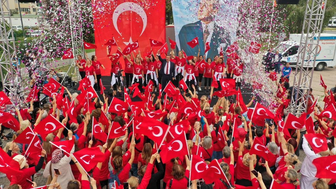 Cumhuriyet Bayramı’nı gururla kutlayan kadınlara seslenen Başkan Batur, İzmirli kadınların Atatürk sevgisiyle, Cumhuriyet’i her zaman savunmalarıyla Türkiye’ye örnek olduğunu vurguladı ve şu ifadeleri kullandı: