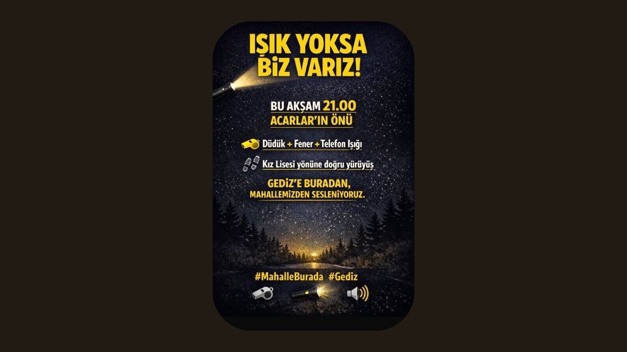 “Işık yoksa biz varız” sloganıyla gerçekleştirilen eylemde mahalle sakinleri, karanlık sokakların yarattığı güvenlik endişelerine dikkat çekti. Acarlar’ın önünde toplanan vatandaşlar, buradan yürüyüşe geçerek taleplerini yüksek sesle dile getirdi. Kısa sürede mahallede geniş yankı uyandıran eylem, yetkililerin de dikkatini çekti.
