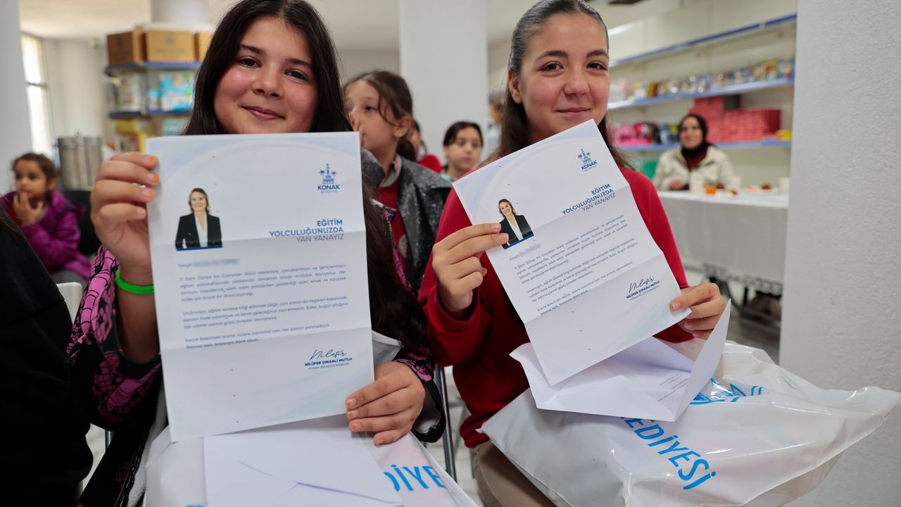 Etkinlik sonunda, kız çocuklarına oyuncaktan kıyafete, kırtasiye malzemesinden eğitim setine kadar çeşitli hediyeler verildi. Paketlerin içinde ayrıca Konak Belediye Başkanı Nilüfer Çınarlı Mutlu’nun Dünya Kız Çocukları Günü’ne özel yazdığı mesaj da yer aldı. Başkan Mutlu mesajında, “11 Ekim Dünya Kız Çocukları Günü vesilesiyle, çocuklarımızın ve gençlerimizin eğitim yolculuklarında yanlarında olmaktan büyük mutluluk duyuyoruz. Her birinizin, hayallerine adım adım yaklaşırken gösterdiği azim, emek ve kararlılık bizler için büyük bir ilham kaynağı. Unutmayın, eğitim sadece bilgi edinmek değil; aynı zamanda özgüven kazanmak, kendini ifade edebilmek ve kendi geleceğinizi inşa etmektir. Sizler, bugün attığınız her adımla yarının güçlü bireyleri olacaksınız. Konak Belediyesi olarak, sizlere inancımız tam. Her zaman yanınızdayız. Yolunuz açık, başarınız daim olsun” ifadelerine yer verdi.