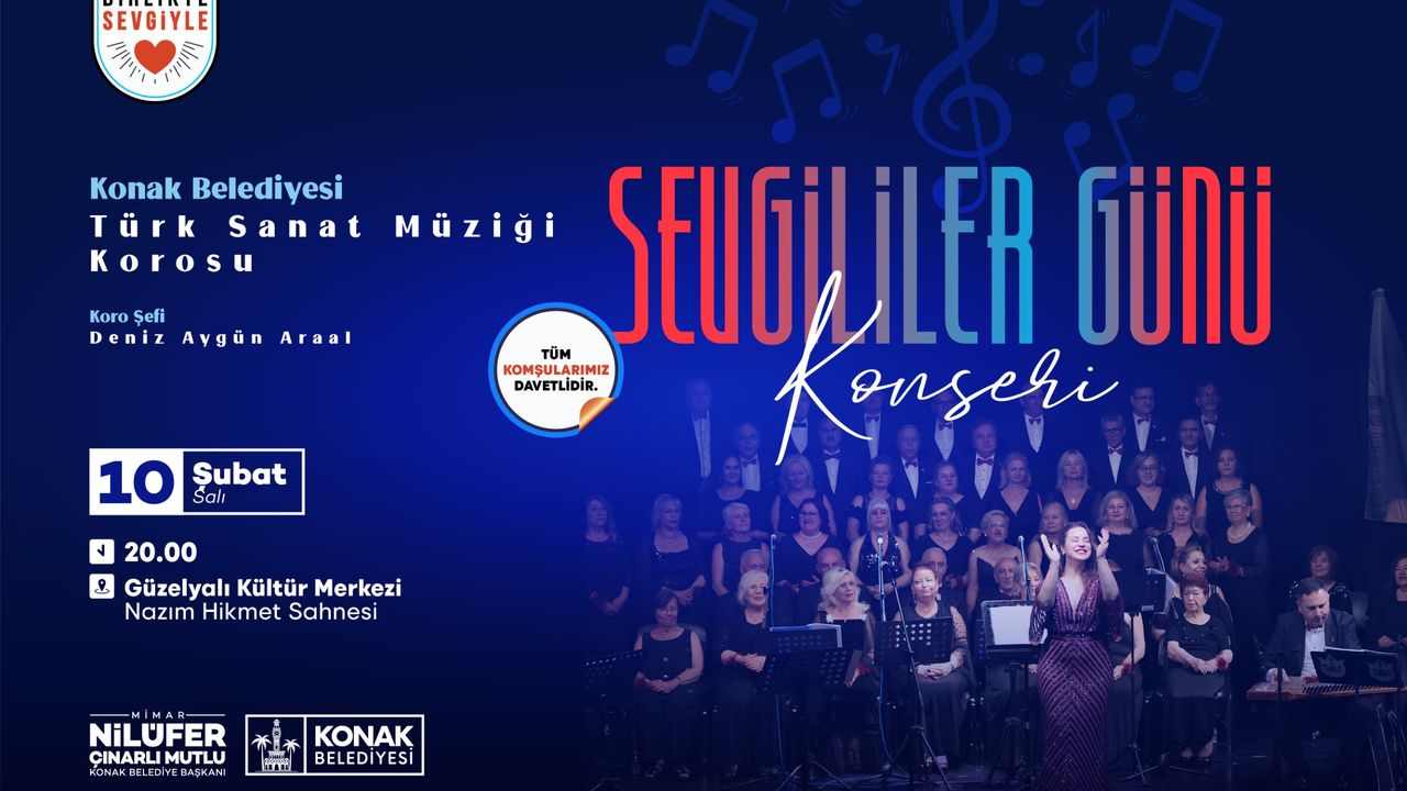 Konak Belediyesi Türk Sanat Müziği Korosu, konseri Şef Deniz Aygün Araal yönetiminde gerçekleştirecek. Programda, aşka ve sevgiye dair en güzel şarkıların seslendirilmesi bekleniyor.