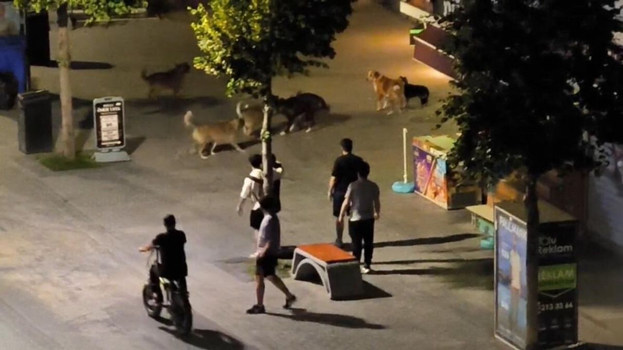 Bolu’da araç geçişine kapalı olan caddede 7 sokak köpeği birbirlerine saldırdı. O sırada caddede bulunan vatandaşlar ise yoldan geçemeyip, köpeklerin dağılmasını bekledi.