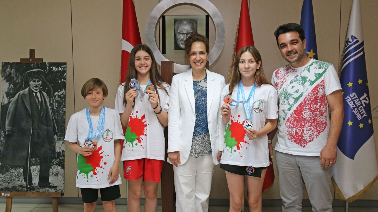 Türkiye Genç Kızlar Voleybol Şampiyonası’nda üçüncü olan Karşıyaka Spor Kulübü’nün genç voleybolcuları ile Rize’de düzenlenen Ulusal Gelişim Ligi 1. Etap Yüzme Müsabakası’ndan 9 madalya ile dönen Karşıyaka Belediyespor Yüzme Takımı, Karşıyaka Belediye Başkanı Yıldız Ünsal tarafından makamda ağırlandı.