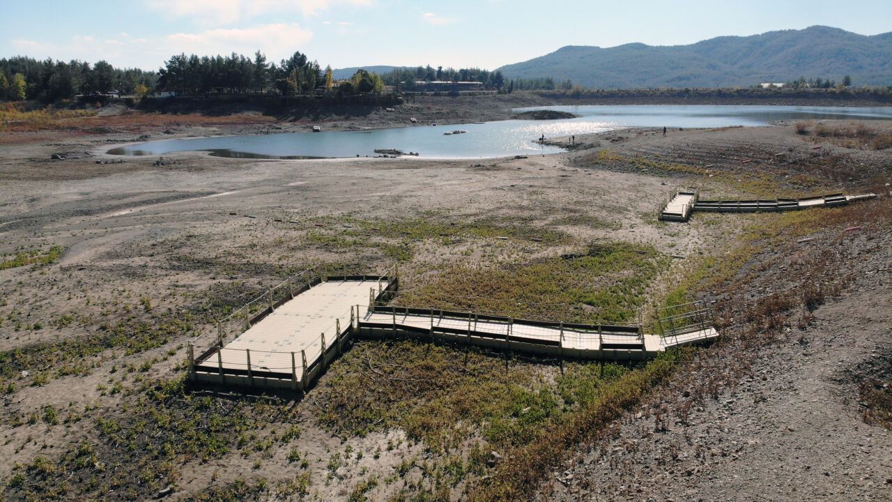 İlçe merkezine 5 kilometre uzaklıkta ve çam ormanları ile çevrili alanda bulunan göletteki su seviyesinin gölet dipsavak seviyesine ulaşması nedeniyle su üstü bisikletler ve yüzer iskeleler toprak üstünde kaldı.