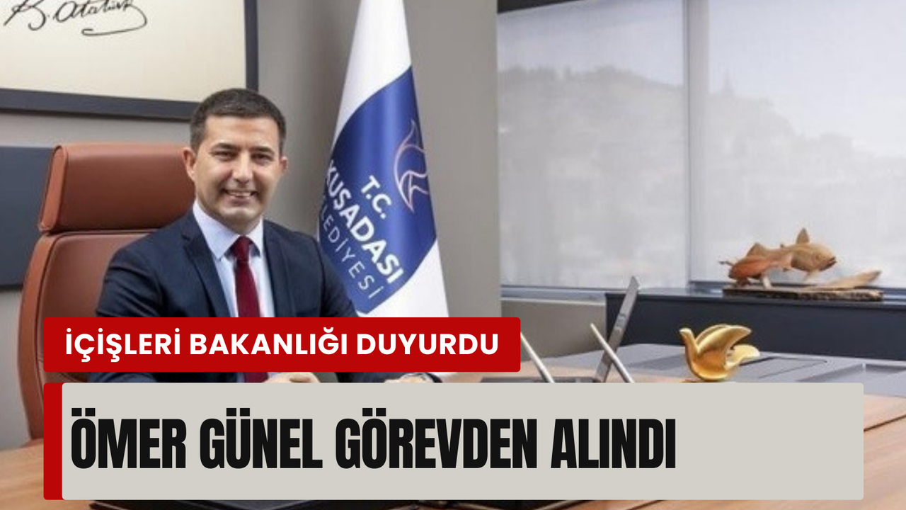 İçişleri Bakanlığı tarafından yapılan açıklamada, Aydın’ın Kuşadası ilçesinin Belediye Başkanı Ömer Günel’in görevden uzaklaştırıldığı duyuruldu. Açıklamada, "Aydın ili Kuşadası Belediye Başkanı Ömer Günel hakkında ‘Rüşvet Almak’ suçu nedeniyle yürütülen soruşturma kapsamında İstanbul 9.Sulh Ceza Hakimliğinin 16.03.2026 tarih ve 2026/276 sorgu sayılı kararı ile tutuklanması üzerine, Anayasanın 127’nci maddesi ile 5393 sayılı Belediye Kanununun 47’nci maddesi uyarınca geçici bir tedbir olarak İçişleri Bakanlığı’nca görevden uzaklaştırılmıştır. Kamuoyuna saygıyla duyurulur" ifadeleri kullanıldı.