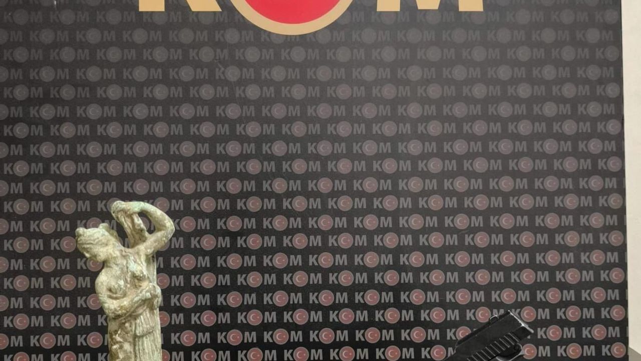 Kuşadası İlçe Emniyet Müdürlüğü Kaçakçılık ve Organize Suçlarla Mücadele Grup Amirliği ekiplerinin ilçede tarihi eser kaçakçılığı yapan kişi ve organizasyonlara yönelik yürüttüğü kararlı çalışmalar sonucunda, değerlendirilen bilgiler doğrultusunda, İkiçeşmelik Mahallesi girişinde bir araç kontrollü olarak durduruldu. Araçta bulunan H.F.N. isimli şahıs indirildi ve yapılan sorgulamasında kimliği tespit edildi. Şahsın aracında yapılan aramalarda, 1 adet 9×19 mm çapında kurusıkı tabanca ve tabancaya ait 1 adet şarjör, 1 adet Helenistik dönemi özelliklerini taşıyan ve Afrodit betimlemesi olduğu değerlendirilen 21.5 cm uzunluğunda, 5.5 cm eninde heykel ele geçirildi. Ele geçirilen malzemelere el konulurken, şahıs gerekli yasal işlemler için emniyete götürüldü.