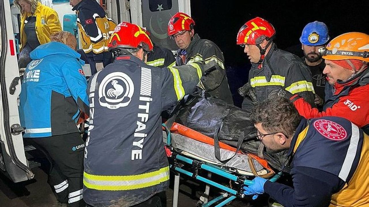 Göçük nedeniyle 3 kişinin mahsur kaldığını değerlendiren ekipler, arama kurtarma çalışması başlattı.