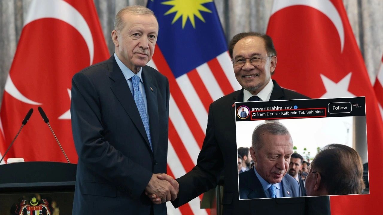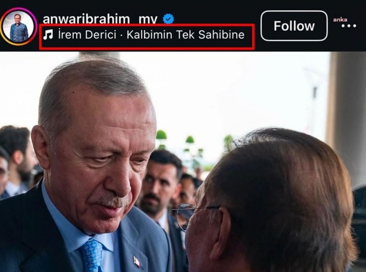 Malezya Cumhurbaşkanı Enver İbrahim, resmi temaslar kapsamında ülkesini ziyaret eden Cumhurbaşkanı Recep Tayyip Erdoğan ile görüşmesinin ardından dikkat çeken bir paylaşım yaptı. İbrahim, sosyal medya hesabından Erdoğan’la birlikte çekilen fotoğrafını paylaşırken, arka planda ünlü şarkıcı İrem Derici’nin "Kalbimin Tek Sahibine" adlı şarkısını ekledi.