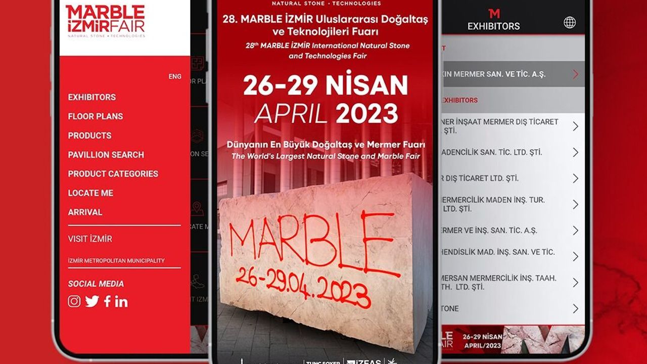 Dünyanın dört bir yanından katılımcısı, yerli ve yabancı ziyaretçi sayısıyla öncü olan Marble İzmir, bu yıl yayına alınan mobil uygulaması ile de Türk doğal taşının daha geniş kitlelere ulaşmasına katkıda bulunacak. Hem Apple Store hem de Google Play’den cep telefonu ve tabletlere indirilebilen Marble İzmir Fair uygulaması ile dünyanın her yerinden Marble İzmir’i duyan, ürünlerden haberdar olmak ve fuara gelmek isteyen herkes bilgilendirilecek. Uygulama, fuar alanındaki katılımcı ve ziyaretçilere kolaylık sağlayacak.