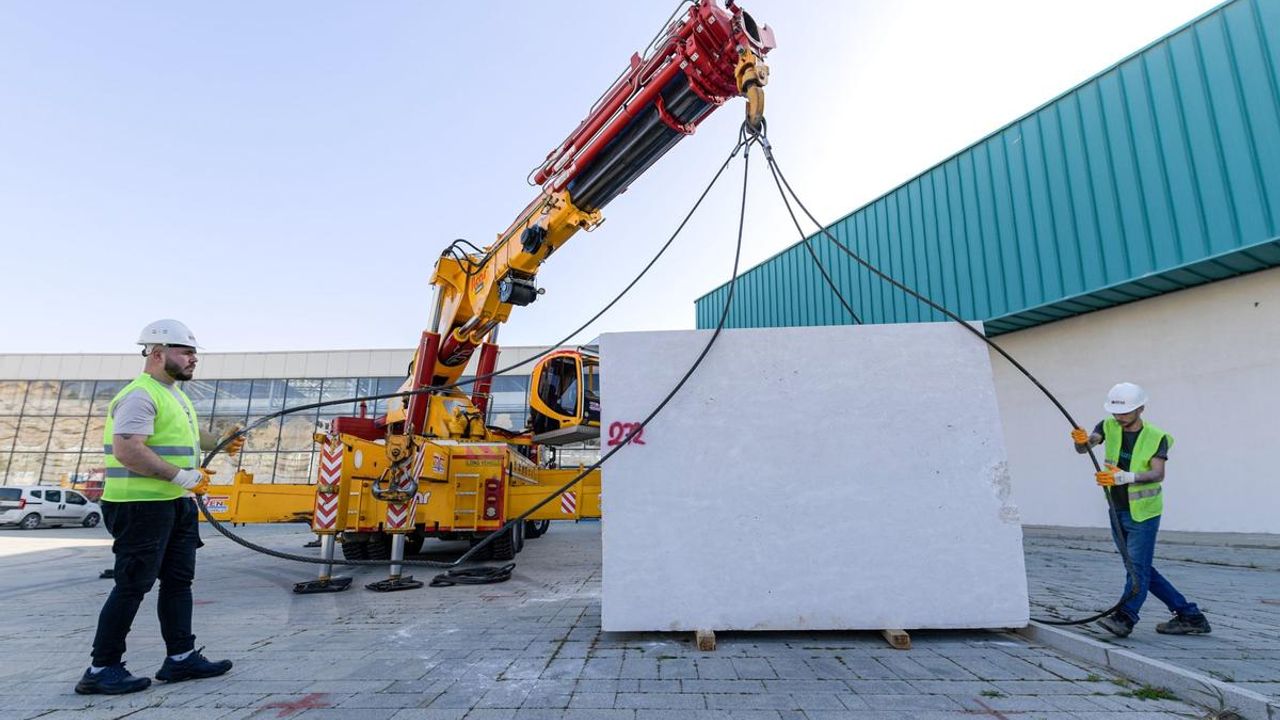 Sergileme alanına ilk blok taşlar getirilirken firmaların stant kurulum süreci de devam ediyor. 29. Marble İzmir için fuarizmir’e getirilen ilk doğal taş, Antalya Elmalı’daki ocaktan çıkarılan ve uluslararası piyasada Claudia Cream olarak adlandırılan bej mermer oldu.