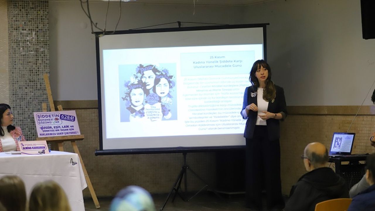Farkındalık çalışmalarının yanı sıra Menderes Belediyesi Gençlik, Kültür ve Sanat Merkezi Amfiteatrosu’nda seminer de gerçekleştirildi. Seminere konuşmacı olarak Avukat Aslı Setenay Ekici ve Menderes Belediyesi Psikoloğu Almina Kahraman katıldı. Etkinlikte, kadına yönelik şiddetle mücadele yöntemleri, karşılaşılan zorluklar, çözüm yolları ve farkındalık yaratmanın önemi ele alındı.