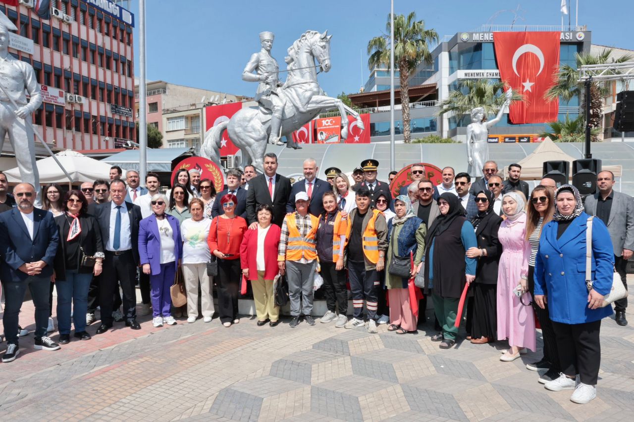 Cumhuriyet Meydanı'nda gerçekleştirilen törene; Menemen Belediye Başkanı Aydın Pehlivan, Menemen Kaymakamı Fatih Yılmaz, Cumhuriyet Başsavcısı Hüseyin Kaçar, Garnizon Komutanı Topçu Albay Zekeriya Tosun’un yanı sıra siyasi parti temsilcileri, kamu kurumları, sivil toplum kuruluşları ve vatandaşlar yoğun katılım sağladı.