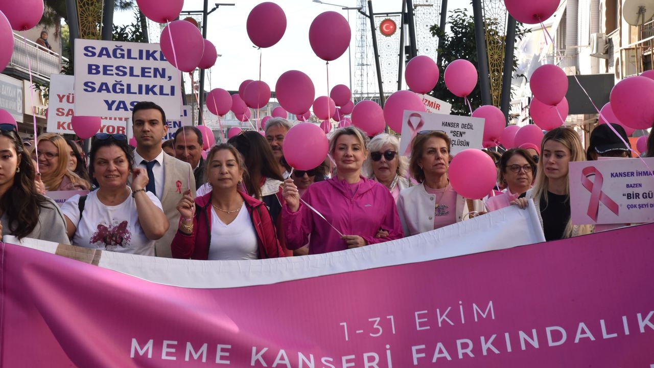 Menemen, bu yıl da anlamlı bir etkinliğe ev sahipliği yaptı. Binden fazla kadın, meme kanserine dikkat çekmek amacıyla pembe balonlarla Menemen Stadı'ndan Cumhuriyet Meydanı'na kadar yürüdü.