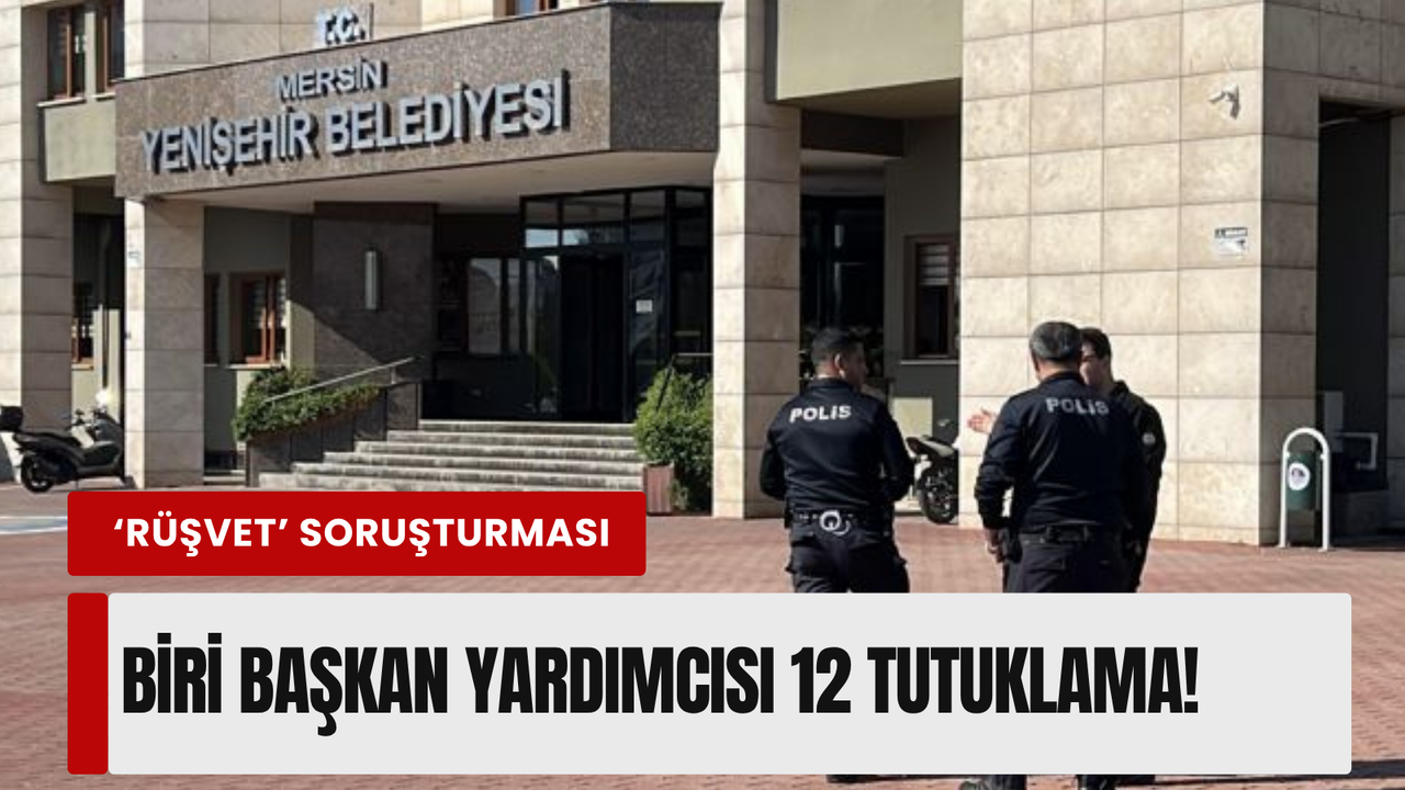 Mersin'in Yenişehir Belediyesi'ne yönelik rüşvet ve ihaleye fesat karıştırma suçlarından düzenlenen operasyonda gözaltına alınan şüphelilerden 1'i belediye başkan yardımcısı 12'si tutuklandı.