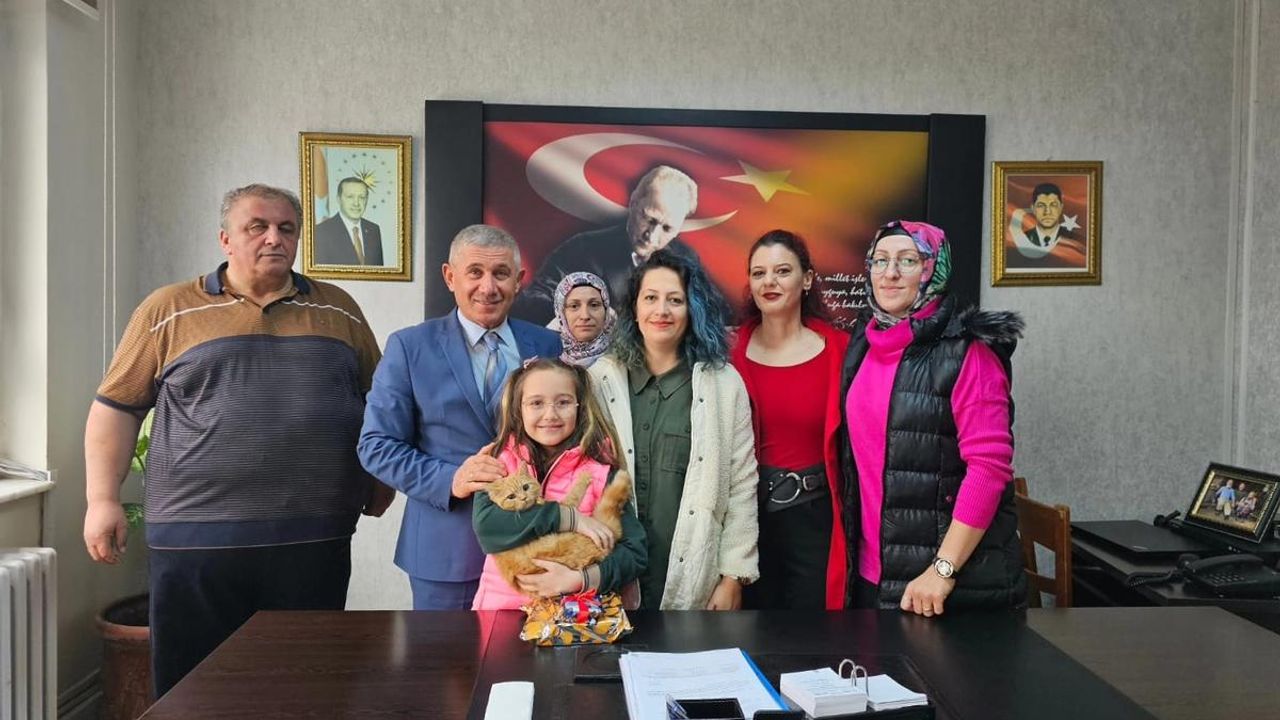 İlçe Millî Eğitim Müdürü Cafer Tosun, ” Aile olarak bir bütün halinde kitap okuyarak topluma iyi birer örnek olduğunuz için kendi adıma da ilçemiz adına da çok mutlu oldum. Kitap okurken bizlere yansıyan sevimli, samimi ve içten duruşunuz bir çok arkadaşına da ilham olacaktır. Özellikle anne ve babaların çocuklarıyla birlikte okuma faaliyetleri yapmaları, öğrencilerimizi teşvik etmek bakımından büyük önem arz etmektedir. İlçemizde yürütmekte olduğumuz “Ben Okuyorum, Torbalı Okuyor” projesine yapılan bu tür farklı ve renkli katkılar projemizin zenginleşmesine ve yaygınlaşmasına destek olacaktır. Seni ve aileni bu güzel örnek davranışınızdan dolayı tebrik ediyorum.” ifadelerini kullanarak minik öğrencimiz Şevval’e ve kedisi Fıstık’a hediyelerini takdim etti.