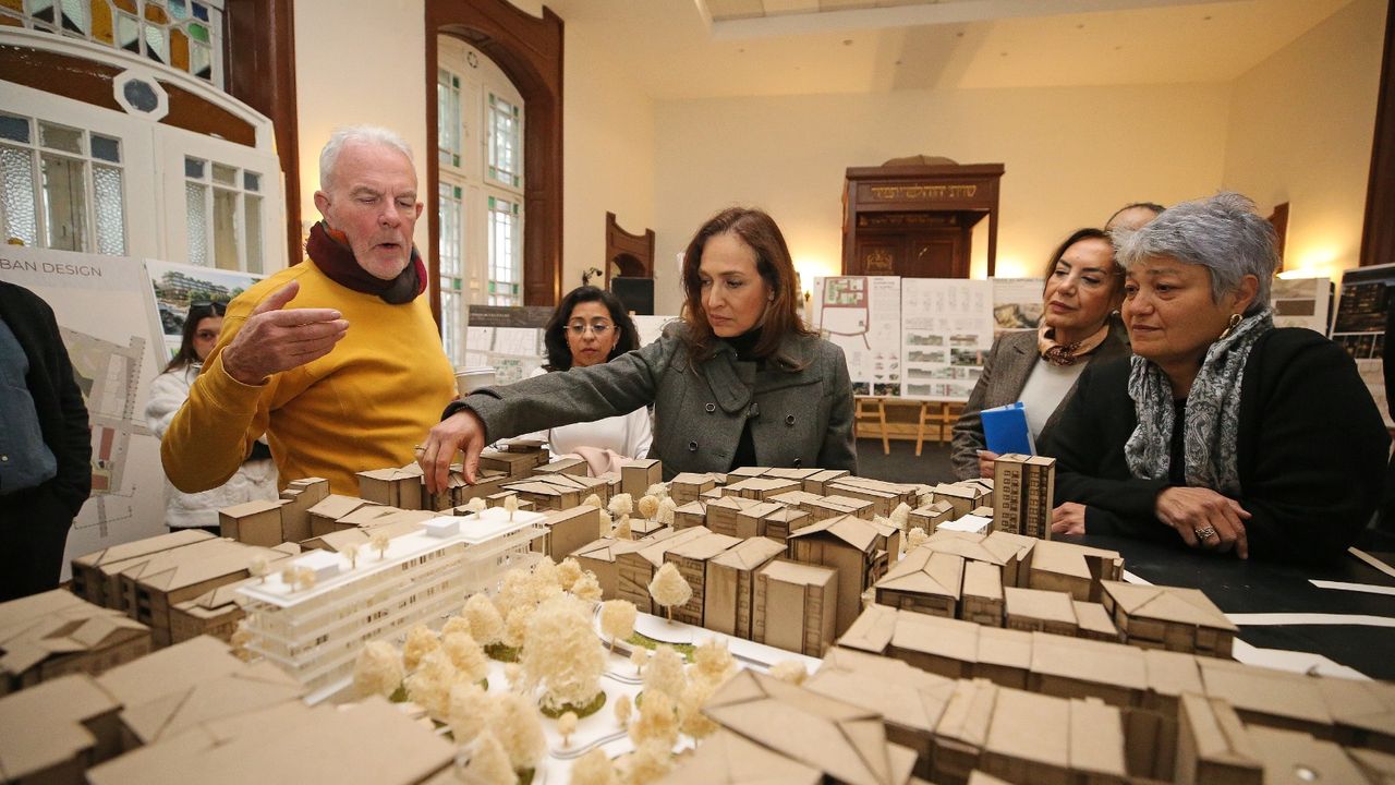 “Kentsel Akupunktur-Alaybey Bölgesi için İyileştirme Önerileri” başlığıyla hazırlanan sergi, Havra binası olarak da bilinen Ahavat Şalom Sinagogu’nda ziyarete açıldı. Sergide; Tahir Bor Parkı’nın yeniden tasarlanmasına yönelik öneriler, parkın güneyinde yer alan Kültür Merkezi ve eski sinagog çevresi ile küçük meydan alanını kapsayan üç düğüm noktasına ilişkin projeler yer aldı. Bu noktalar arasındaki bağlantı yolları ise bölgeyi canlandırmayı hedefleyen peyzaj ve mekânsal düzenleme önerileriyle ele alındı. Sergiyi ziyaret eden Yıldız Ünsal, öğrencilerin projelerini inceleyerek çalışmalara ilişkin bilgi aldı. Ünsal, İzmir Ekonomi Üniversitesi Güzel Sanatlar ve Tasarım Fakültesi Mimarlık Bölümü öğretim görevlisi Hugh David Clarke ile de projeler üzerine görüş alışverişinde bulundu. Öğrenciler tarafından geliştirilen fikirlerin, Karşıyaka Belediyesi tarafından yürütülen Kültür Rotası Projesi’ne de ilham vermesi hedefleniyor.