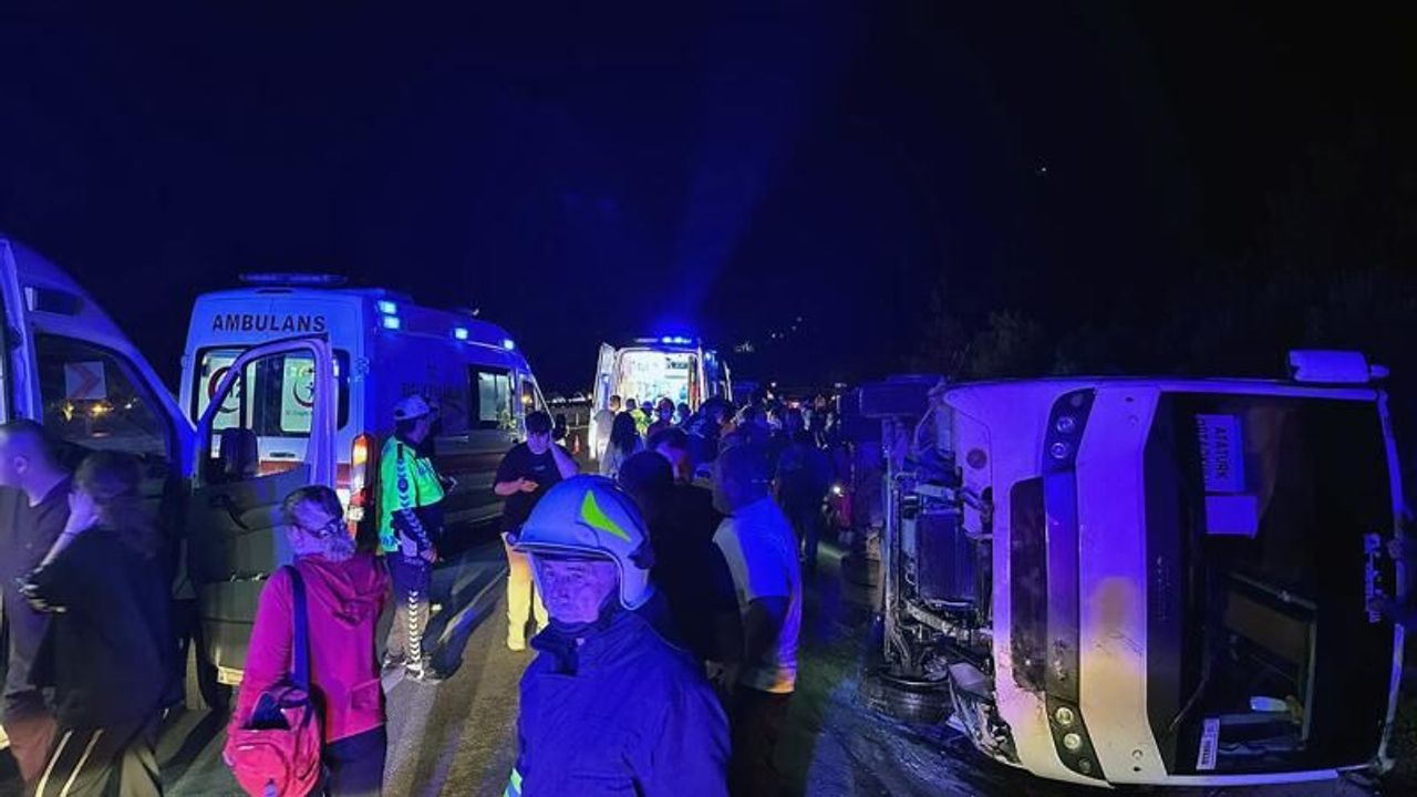 Kazada sürücü ile 2 öğretmen ve 22 öğrenci yaralandı. İhbar üzerine bölgeye çok sayıda ambulans, itfaiye, jandarma ve polis ekibi sevk edildi.