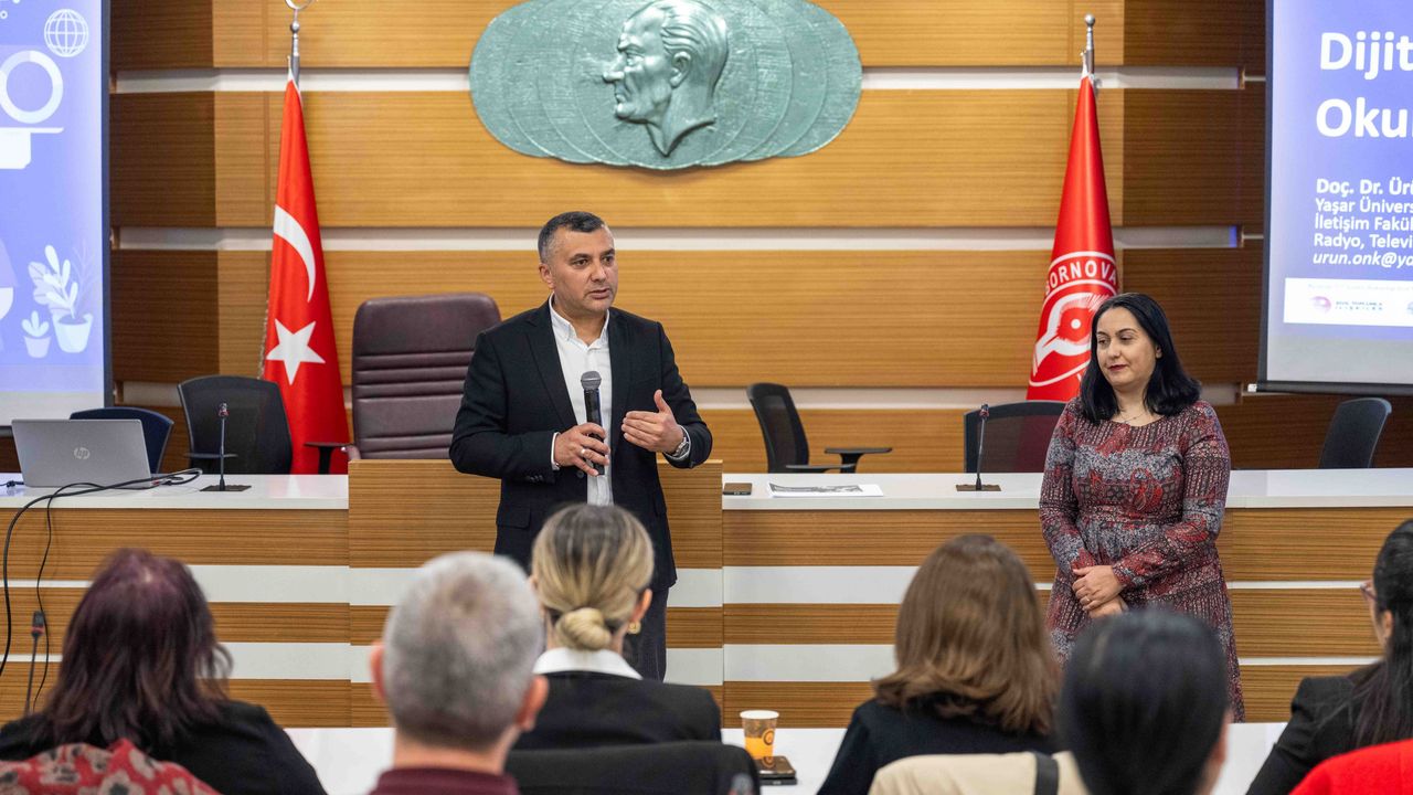 Bornova Belediyesi, Bornova Kaymakamlığı, Yaşar Üniversitesi ve Muhtarlar Derneği iş birliğiyle hayata geçirilen Muhtarlar Akademisi, dijital okuryazarlık eğitimiyle tamamlandı. Bornova Belediyesi Meclis Salonu’nda düzenlenen son derste, Yaşar Üniversitesi İletişim Fakültesi’nden Doç. Dr. Ürün Yıldıran Önk tarafından muhtarlara dijital dünyada doğru bilgiye erişim, medya okuryazarlığı ve güvenli iletişim konularında kapsamlı bilgiler aktarıldı.