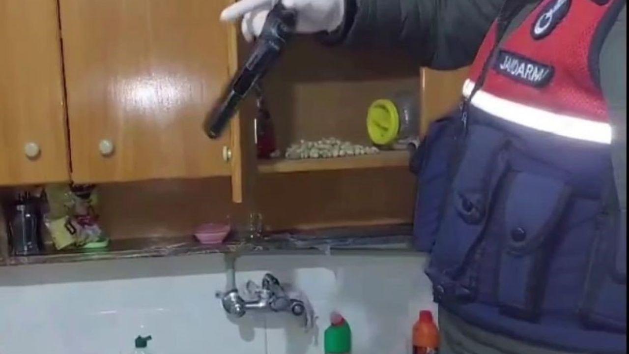 Operasyonda şüpheli yakalanırken evinde yapılan aramada mutfaktaki dolaplardan 3 kilo 750 gram kubar esrar, 10 gram metamfetamin, bin 590 adet uyuşturucu hap, 2 adet hassas terazi ve 2 adet tabanca ele geçirildi.