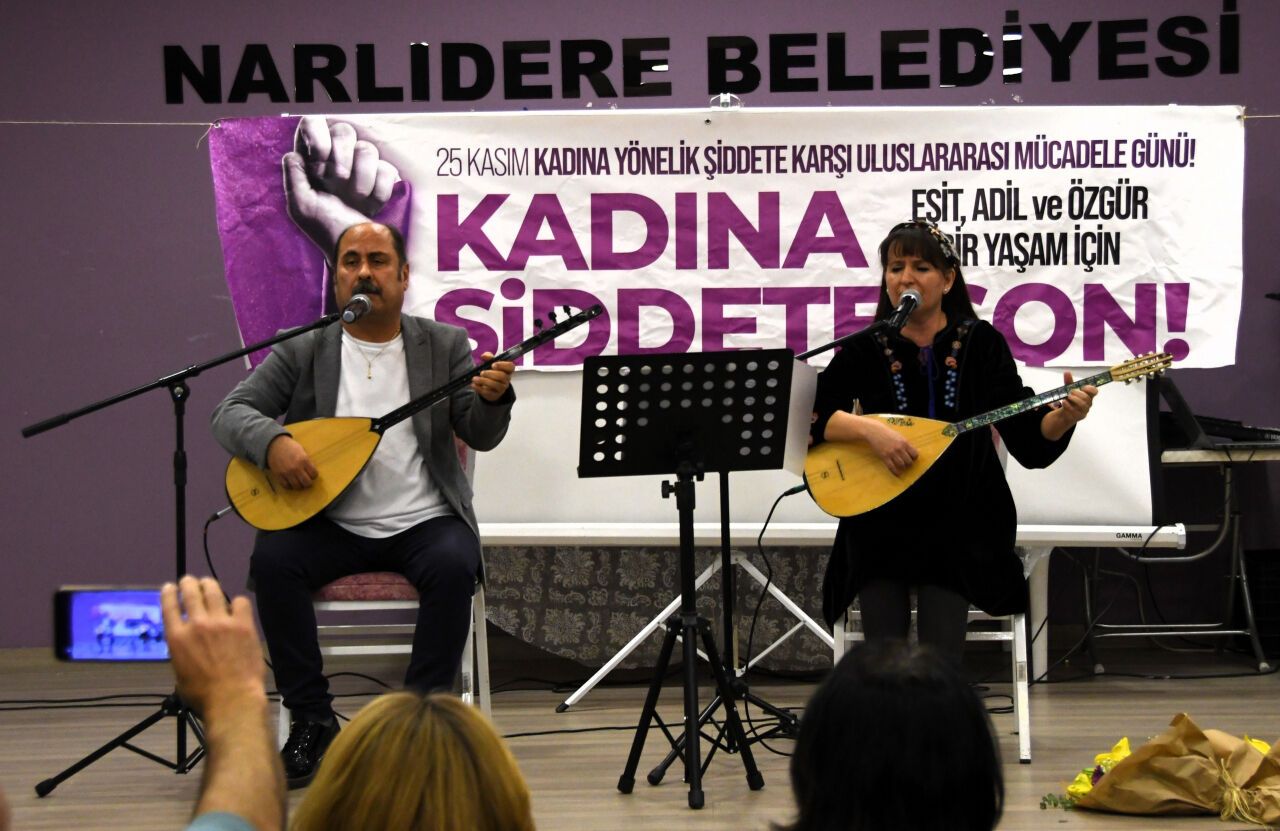 Narlıdere Belediyesi'nin Atatürk Kültür Merkezi'nde düzenlediği etkinlikler, kadına yönelik şiddete karşı toplumsal duyarlılığı artırmayı amaçladı. Program, Ressam ve Küratör Aygün Selvitopu'nun öncülüğünde hazırlanan "Kadınların Sessiz Çığlığı" adlı resim sergisinin açılışıyla başladı. Ardından Avukat Ferda Demirbaş'ın kadın hakları üzerine yaptığı bilgilendirici söyleşi ve Türk Halk Müziği sanatçıları Murat ve Özlem Sincer'in verdiği müzik dinletisiyle devam etti.