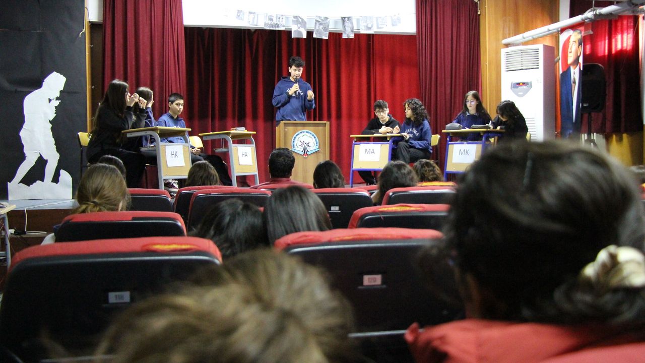 Okulumuzda münazara çalışmaları belirli aralıklarla düzenlenmeye devam ediyor. Felsefe öğretmenimiz Mehmet Uyanık öncülüğünde yürütülen çalışmalarda öğrencilerimiz hem temel düzeyde hem de ileri düzeyde münazara eğitimi alıyor.