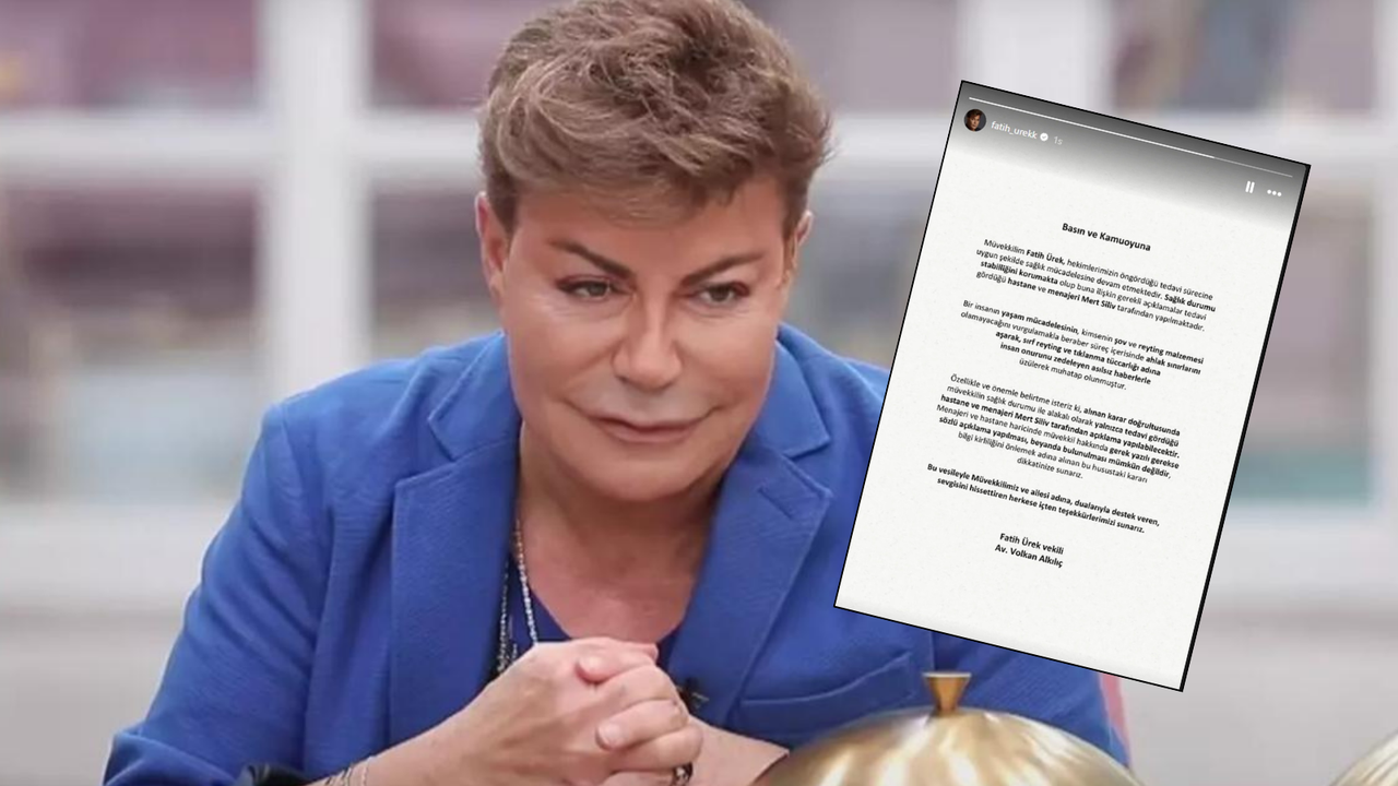 Fatih Ürek'in sosyal medya hesabından yapılan açıklamada; "Müvekkilim Fatih Ürek, hekimlerimizin öngördüğü tedavi sürecine uygun şekilde sağlık mücadelesine devam etmektedir. Sağlık stabilliğini korumakta olup buna ilişkin gerekli açıklamalar tedavi gördüğü hastane ve menajeri Mert Siliv tarafından yapılmaktadır. Bir insanın yaşam mücadelesinin, kimsenin şov ve reyting malzemesi olamayacağını vurgulamakla beraber süreç içerisinde ahlak sınırlarını aşarak, sırf reyting ve tıklanma tüccarlığı adına insan onurunu zedeleyen asılsız haberlerle üzülerek muhatap olunmuştur. Özellikle ve önemle belirtmek isteriz ki, alınan karar doğrultusunda müvekkilin sağlık durumu ile alakalı olarak yalnızca tedavi gördüğü hastane ve menajeri Mert Siliv tarafından açıklama yapılabilecektir. Menajer ve hastane haricinde müvekkil hakkında gerek yazılı gerekse sözlü açıklama yapılması, beyanda bulunulması mümkün değildir; bilgi kirliliğini önlemek adına alınan bu husustaki kararı dikkatinize sunarız. Bu vesileyle Müvekkilimiz ve ailesi adına, dualarıyla destek veren, sevgisini hissettiren herkese içten teşekkürlerimizi sunarız" dedi.