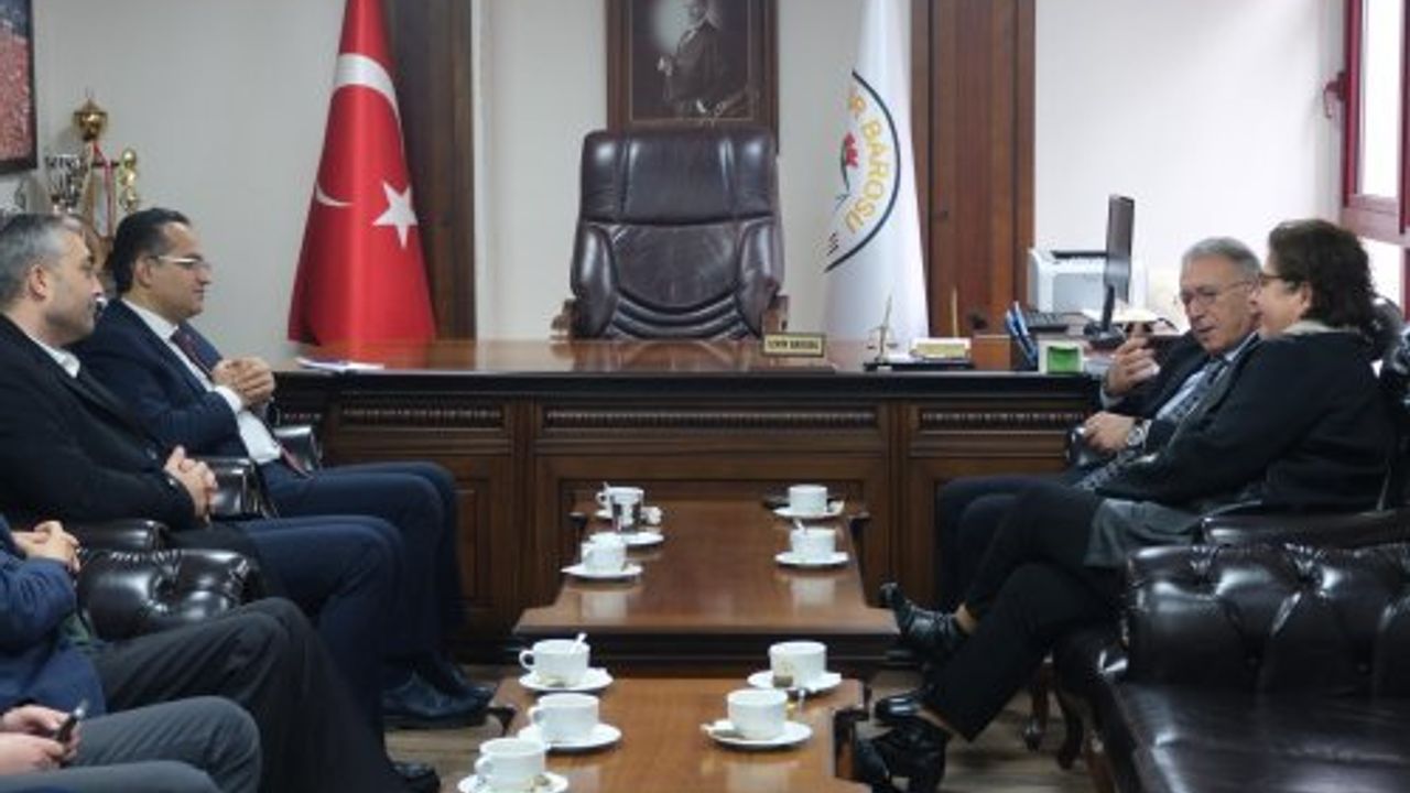İzmir Büyükşehir Belediye Başkan Aday Adayı Olgun Atila, İzmir Barosu’nu ziyaret etti. Baro Başkanı Sefa Yılmaz, yönetim kurulu üyeleri ve İzmir Barosu Önceki Dönem Başkanı Sema Pektaş yer aldığı görüşmede; Hak, Hukuk ve Adalet kavramlarına dikkat çekilerek Türkiye’nin bu konudaki ihtiyaçları masaya yatırıldı.