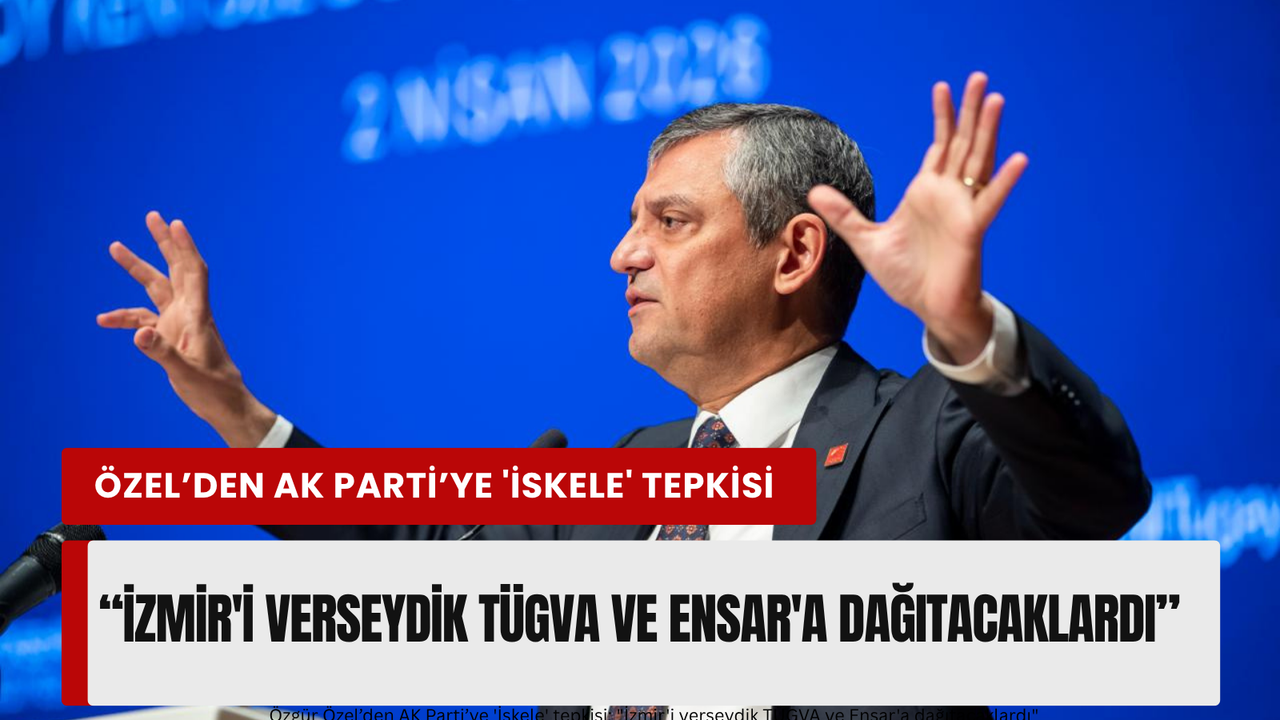 Özgür Özel, "İzmir’de yerel seçim öncesi CHP’nin planı, vizyonu nedir diye, AK Parti’nin planı, vizyonu nedir diye. Adalar’da vapur iskelesinin üst katı var. Dünyanın en güzel manzarasına bakıyor. Orayı nereye versen olabilecek en yüksek kirayı alırsın. Ne yaptı AK Parti, 25 yıllığına TÜGVA’ya verdiler. İzmir’i AK Parti’ye verseydik Pasaport İskelesini Ensar Vakfı’na, Karşıyaka İskelesi’ni TÜGVA’ya vereceklerdi. Paraşüt Kulesi’ni İlim Yayma Cemiyeti’ne vermeleri an meselesi idi.