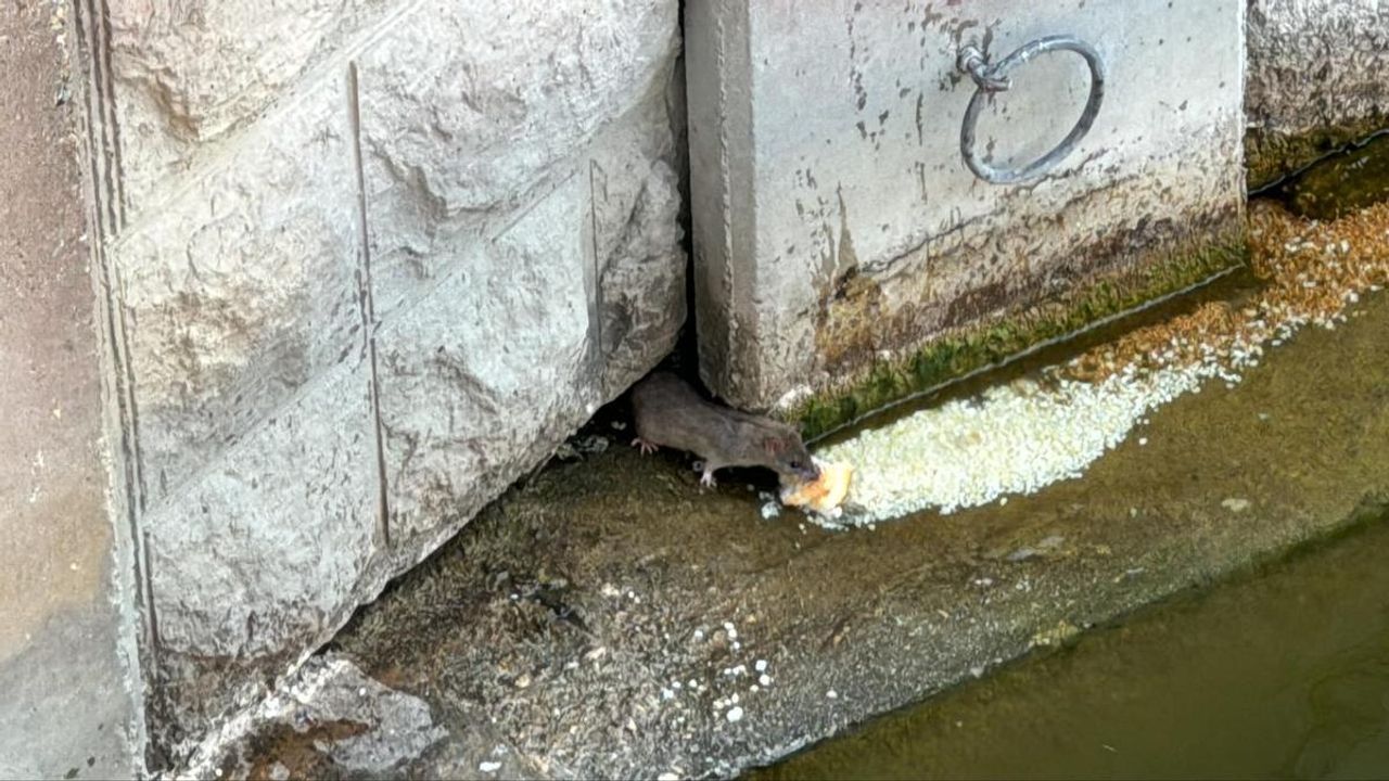 Porsuk Çayı’nın çevresine bırakılan buğday, ekmek, pirinç gibi ürünlerle beslenen fareler görüntülendi.