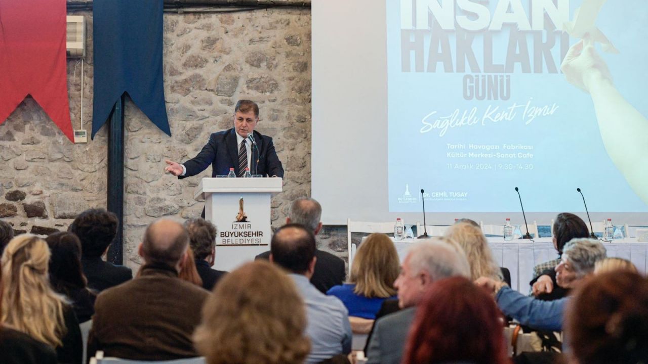 Dünya İnsan Hakları Günü nedeniyle etkinlik düzenleyen İzmir Büyükşehir Belediyesi “Sağlıklı Kent İzmir” vurgusu yaptı. Etkinliğin açılış konuşmasını yapan Başkan Dr. Cemil Tugay, Türkiye’de giderek artan açlık, yoksulluk ve işsizliğe dikkat çekti. İzmir’in projeleriyle mücadelenin öncüsü olması gerektiğini söyleyen Tugay, tüm kitle örgütlerine çağrı yaparak “Bu gidişata dur demenin zamanı bugündür” dedi.